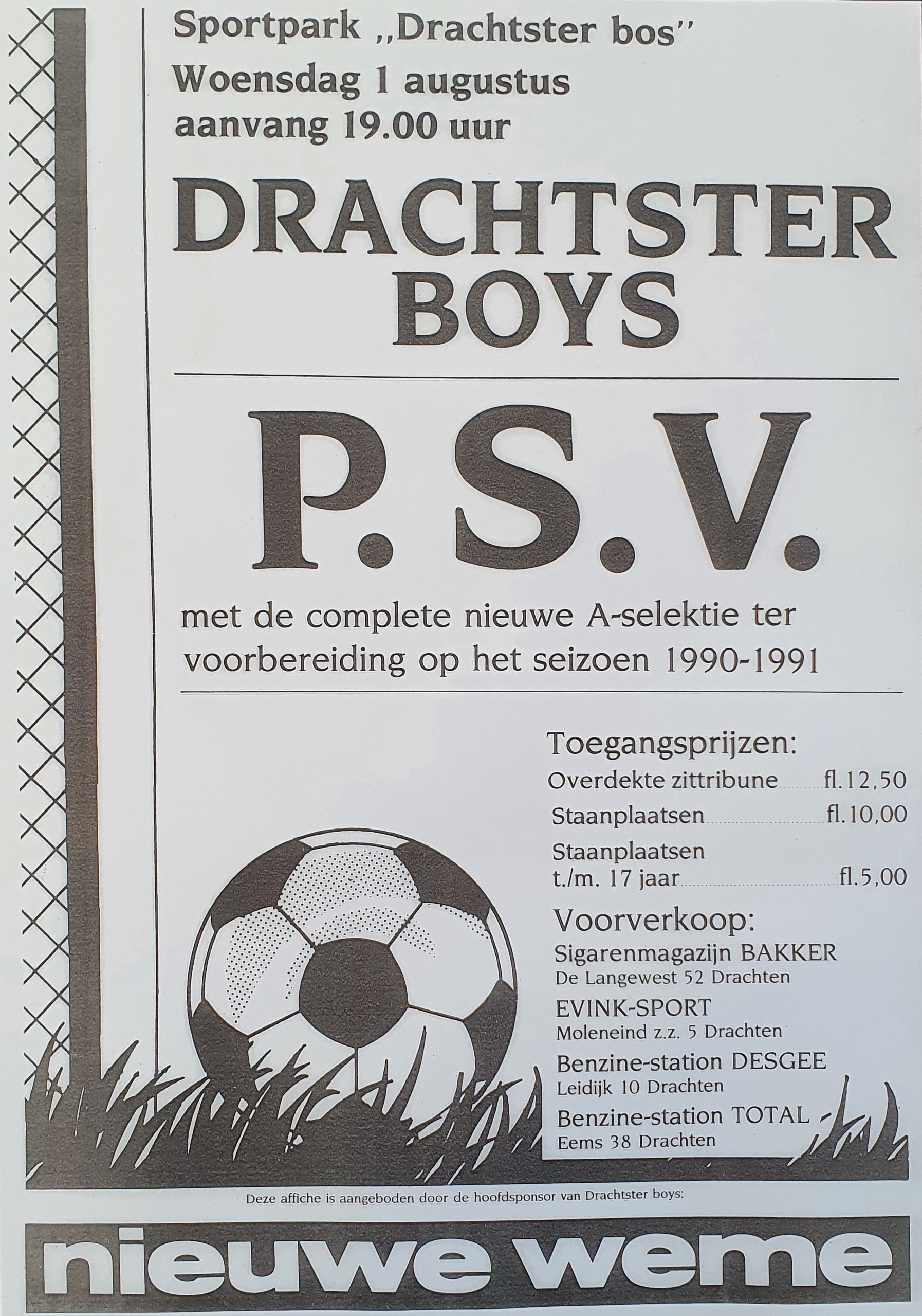 Op 3 augustus 1992 doet de complete nieuwe selectie van FC Barcelona Drachten aan tijdens haar traditionele oefencampagne in Nederland ter voorbereiding van de competitie 1992-’93. Met trainer Johan Cruyff en de Nederlandse vedetten Ronald Koeman en Richard Witsche, en internationale vedetten als de Bulgaar Stoitsjkov en de Deen Michael Laudrup. Bij Drachtster Boys o.a. keeper Henk Konings, Tjibbe Ferwerda en Bert van der Werff.