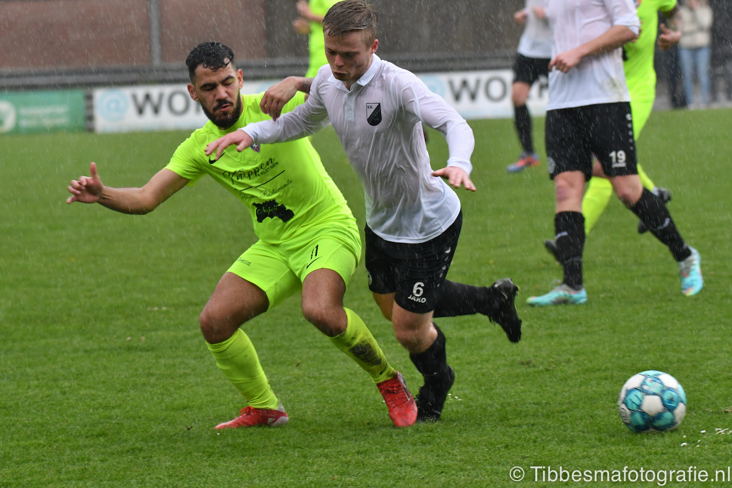 Hoe anders is de tweede helft. De temperatuur daalt, het spelniveau en het geloof in een resultaat. De regen zorgt zelfs voor wat naargeestigheid. Een glibberbal die Emile los laat. Counters die uitmonden in meer