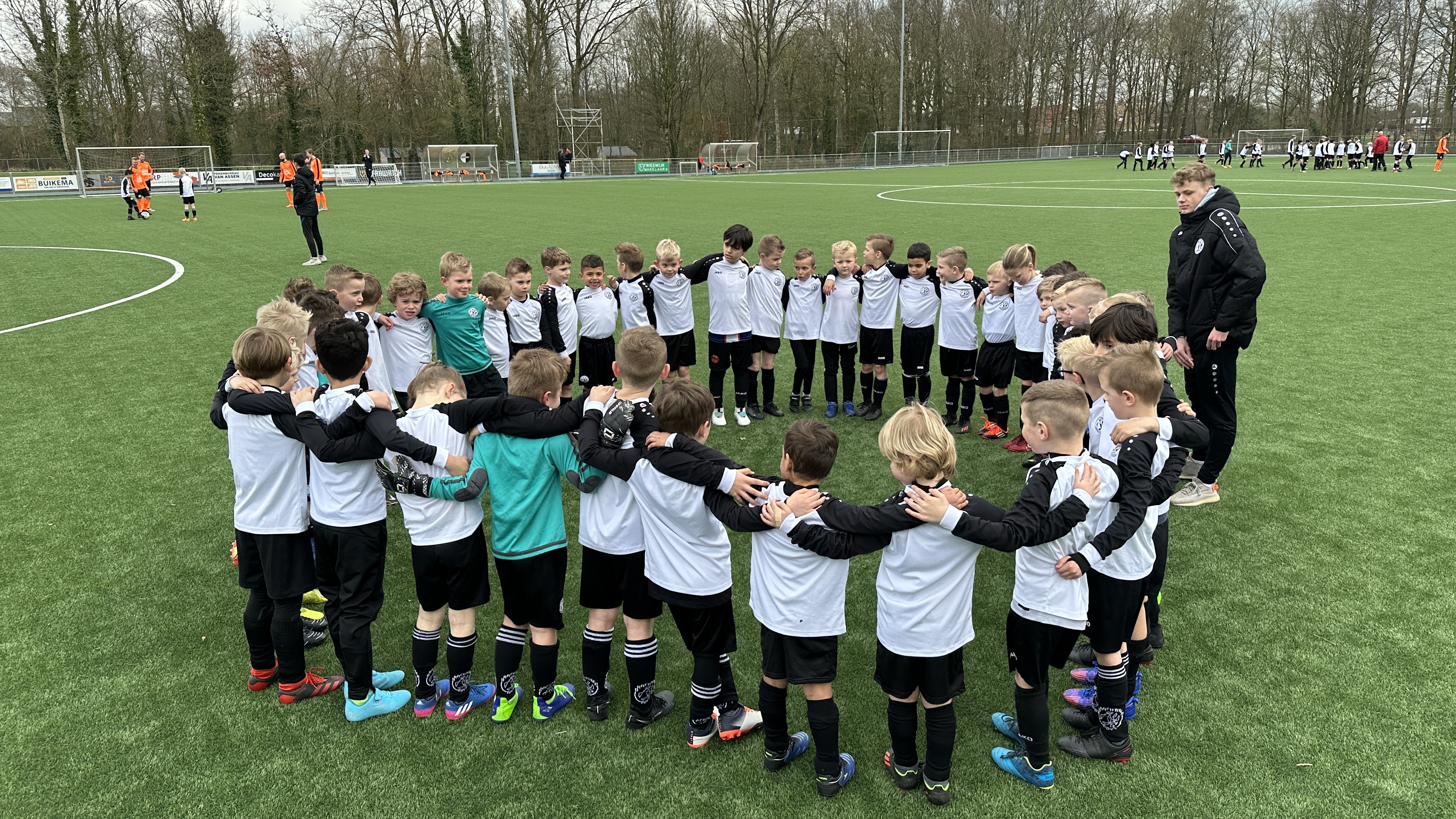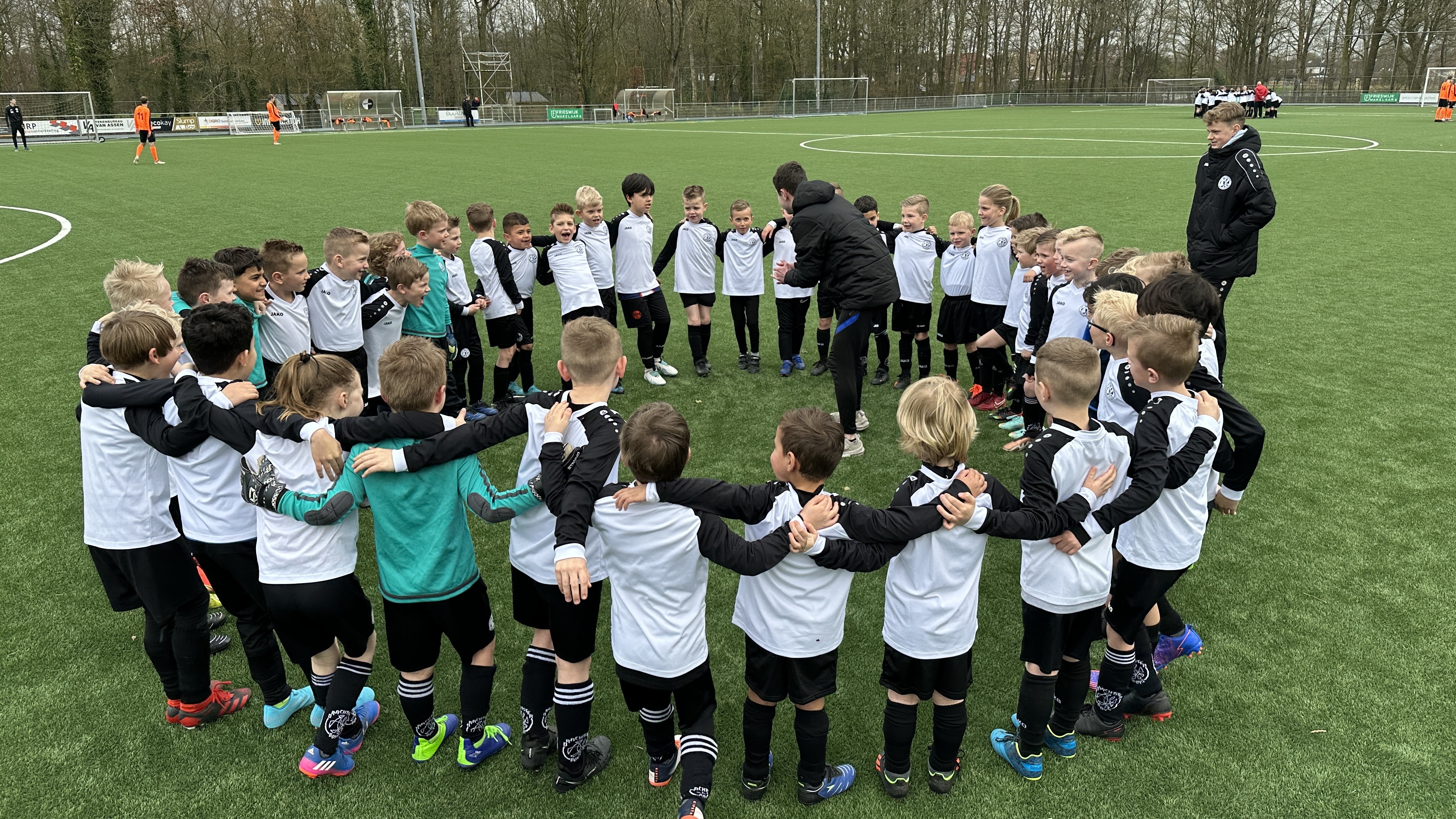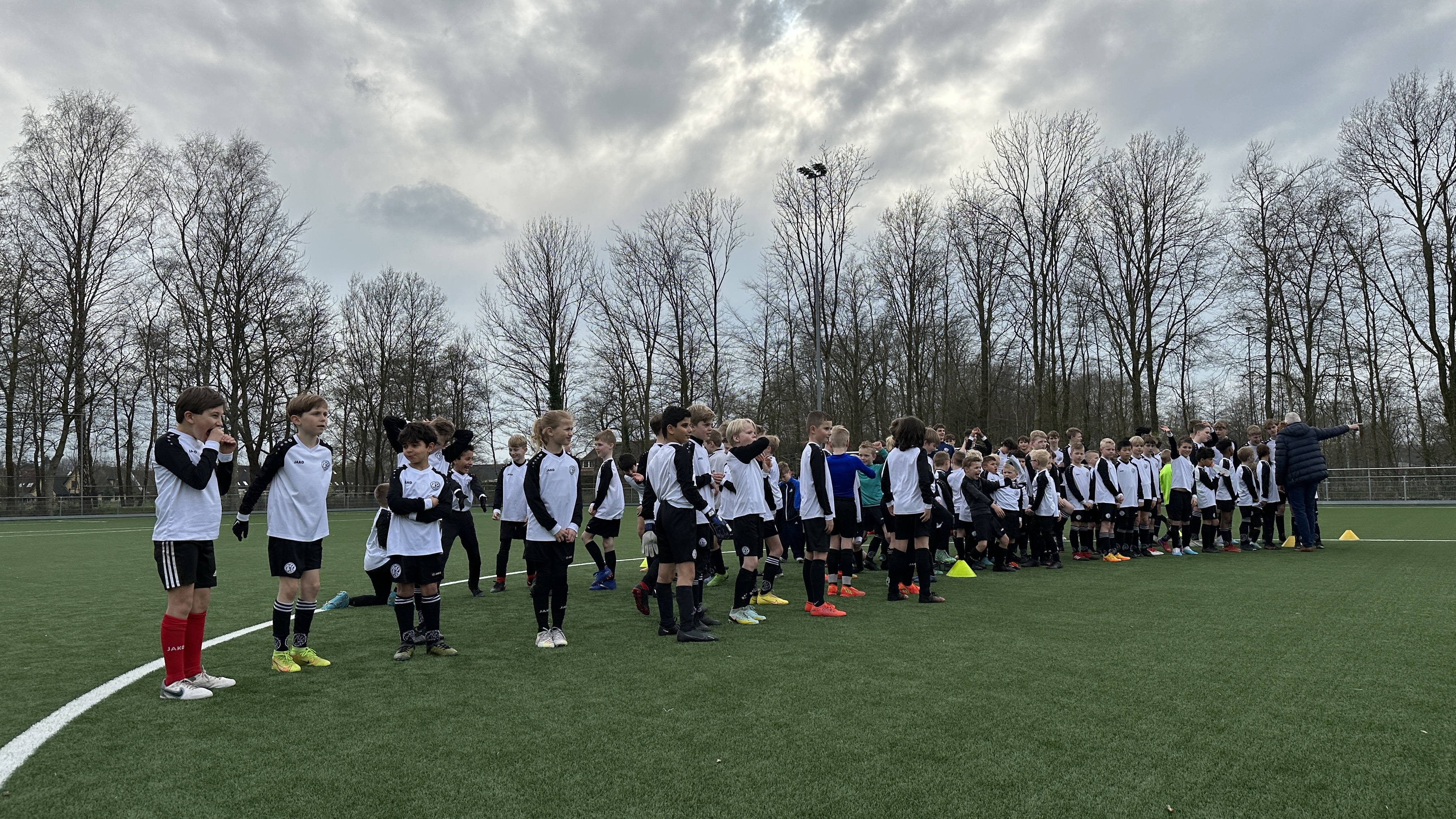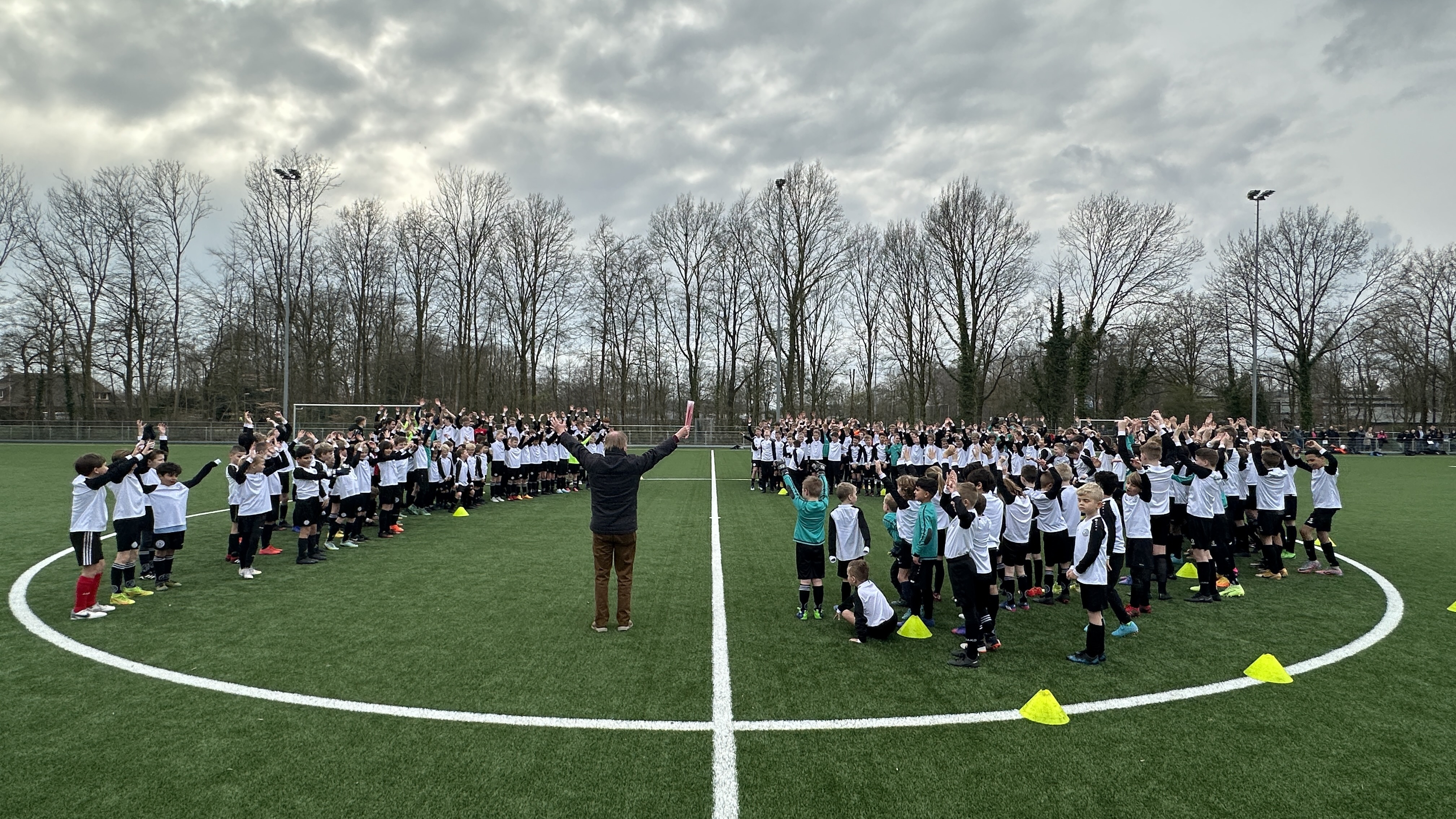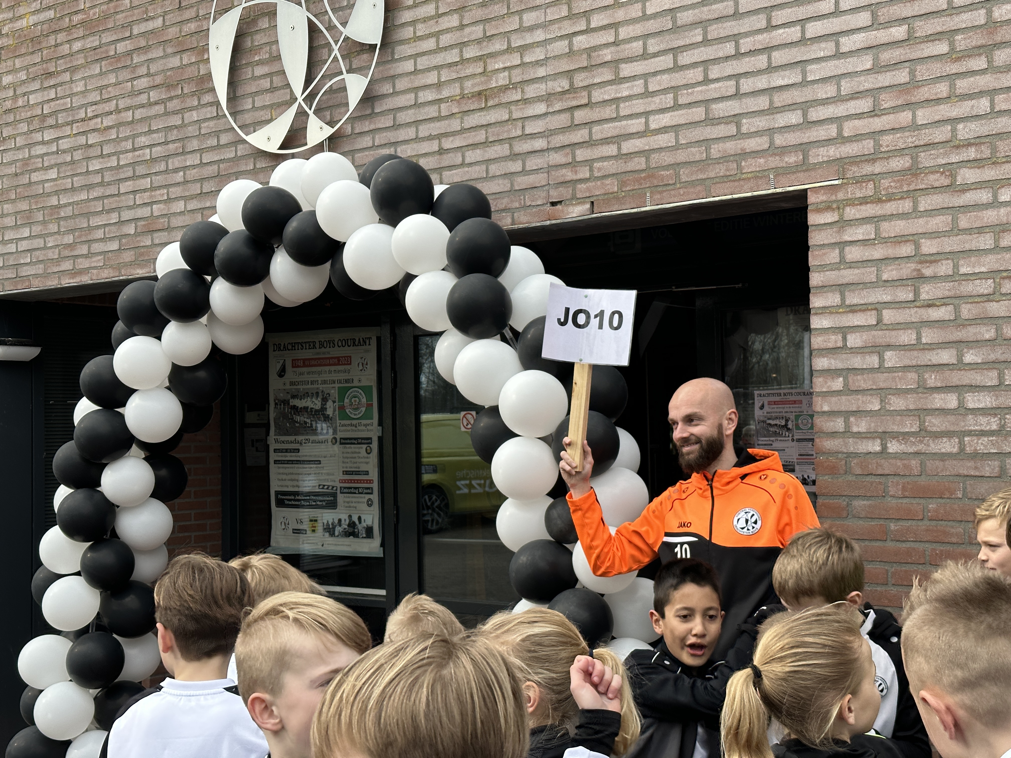 Op de jubileumdag ging de jeugd, na verzameld te hebben bij het clubhuis, op weg naar het B-veld, onder leiding van leiders, trainers en de A-selectie. Er werd een bijzondere foto met de drone gemaakt.