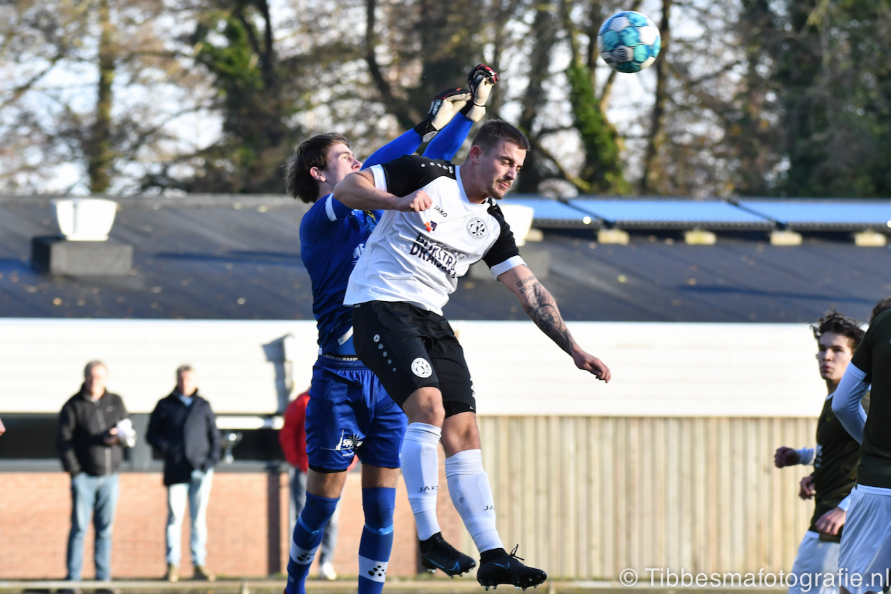 Laat in de eerste helft is het schrikken geblazen. Barends speelt terug. Richting een lege goal. Met kunst- en vliegwerk weet Emile een treffer te voorkomen.