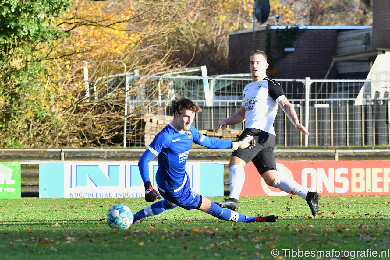 De 1-1 is een schoonheid. De crosspass van Djinn Keegstra is smullen geblazen. Chris Tuinstra heeft geloof. De bal zijlt over de Alcides back. Chris kruipt achterlangs, neemt aan, loopt door en scoort.