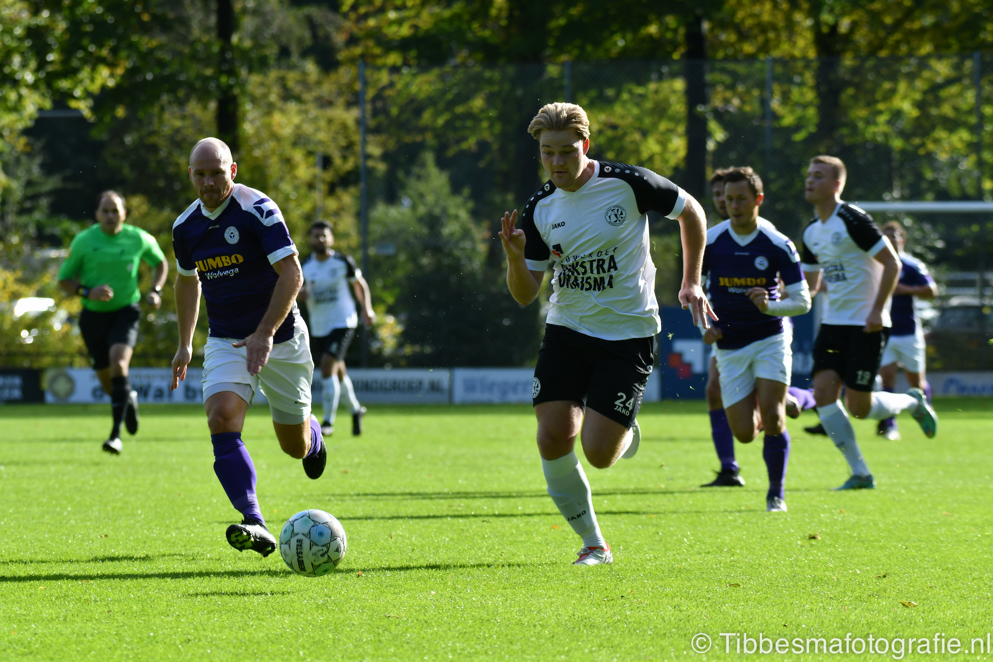 De wedstrijd is overigens prettig om te aanschouwen. Het hoofdveld ligt er beter bij dan na de natte moesson van vrijdag viel te verwachten. Beide teams zijn lekker bezig. Wolvega verdedigt vrij vrolijk. Drachtster Boys valt voornamelijk aan.