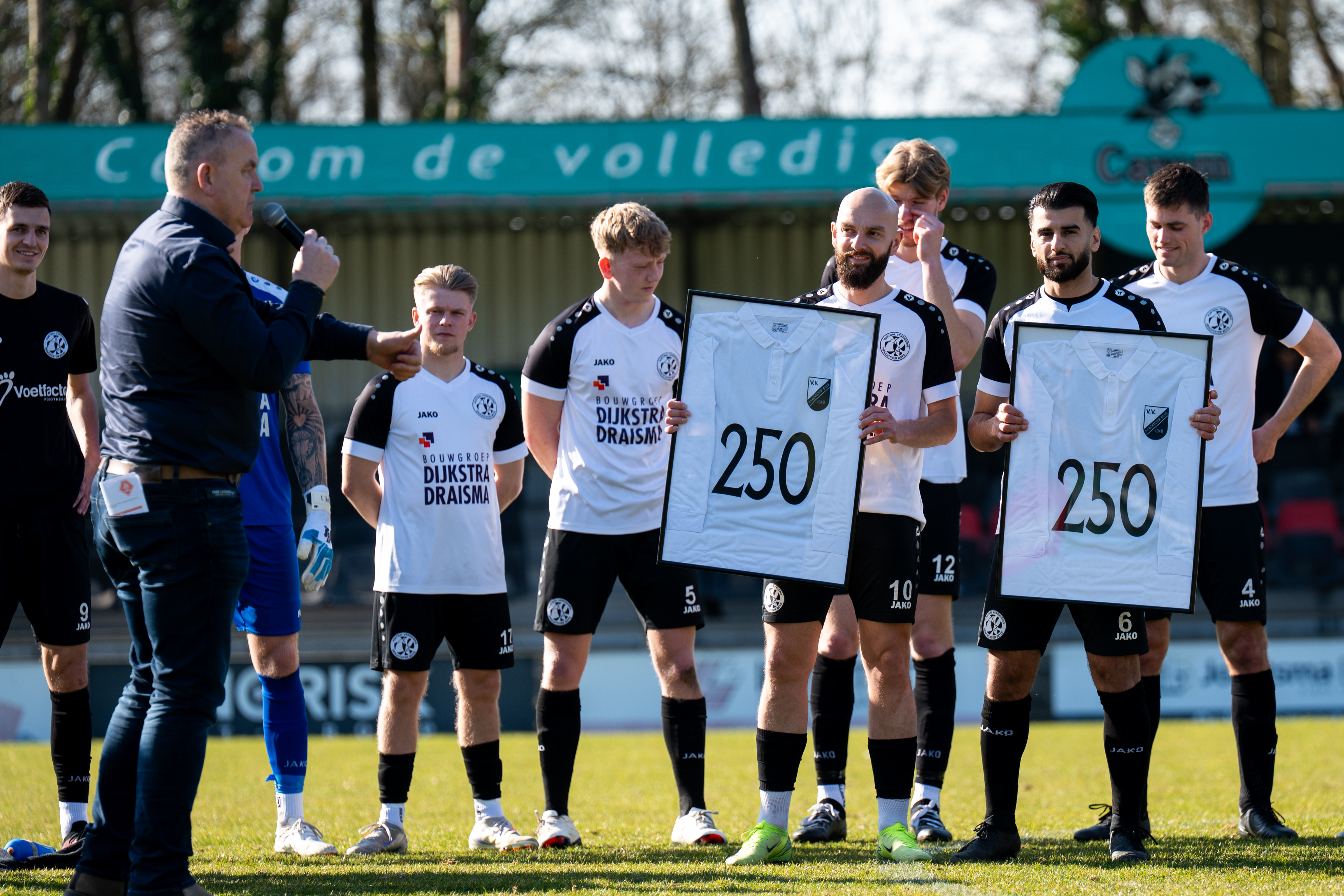 Dylan twee keer over zijn geliefde linkerkant. De eerste keer scoort hij zelf. De tweede actie is zeker zo fraai. De voorzet afgemeten. Joost Bosma timet perfect, volleert de bal uit de lucht en plaatst deze achter de keeper van Heerenveen.