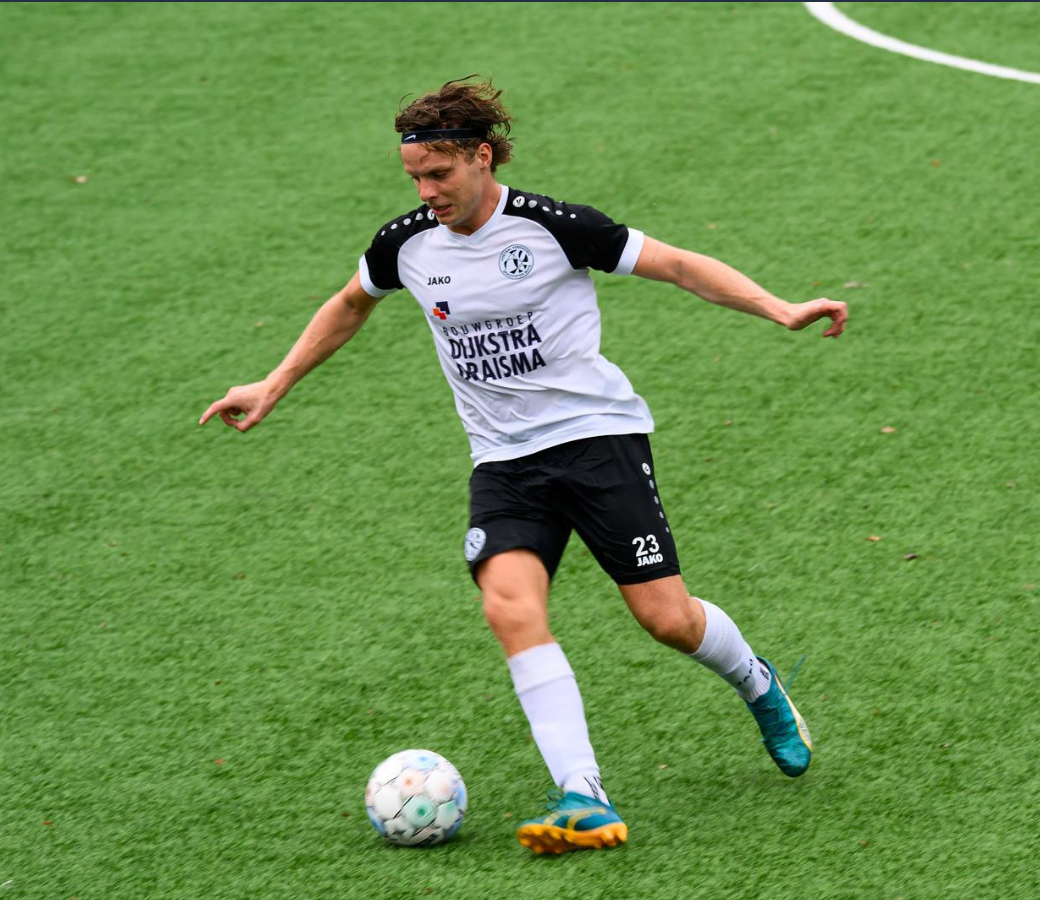 mogelijkheden. Trainer Carlo Rietdijk van Drachtster Boys probeerde met zijn fysieke aanwezigheid langs de lijn letterlijk lijn te krijgen in het spel van zijn ploeg, maar zag zijn pogingen stranden toen Sven Kesimaat van oranje Nassau vanuit het niets in de 25e minuut met een het moet gezegd prachtige kopbal de 0-1 tegen de touwen sloeg. En toen, ook weer uit het niets, Oranje Nassau ineens de complete linkerflank van Drachtster Boys verschalkte en de daaruit volgende voorzet gemakkelijk tot doelpunt verlengd werd, werd de pauzestand zomaar ineens 0-2.