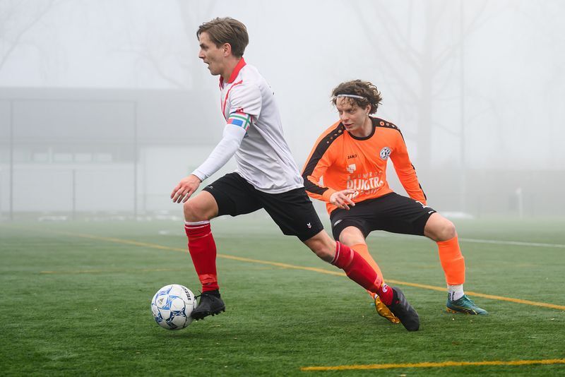 We begrijpen een klein half uur lang niet goed waarom de thuisploeg slechts één punt heeft vergaard. Totdat binnen 1 minuut er van alles misgaat. De keeper van de thuisclub komt onbegrijpelijk uitlopen. Dylan profiteert en stelt Jorn in staat om de 1-0 binnen te schuiven. De 2-0 direct na de GRC aftrap, wederom Jorn. Chris is bij beide doelpunten als slimme passer betrokken.