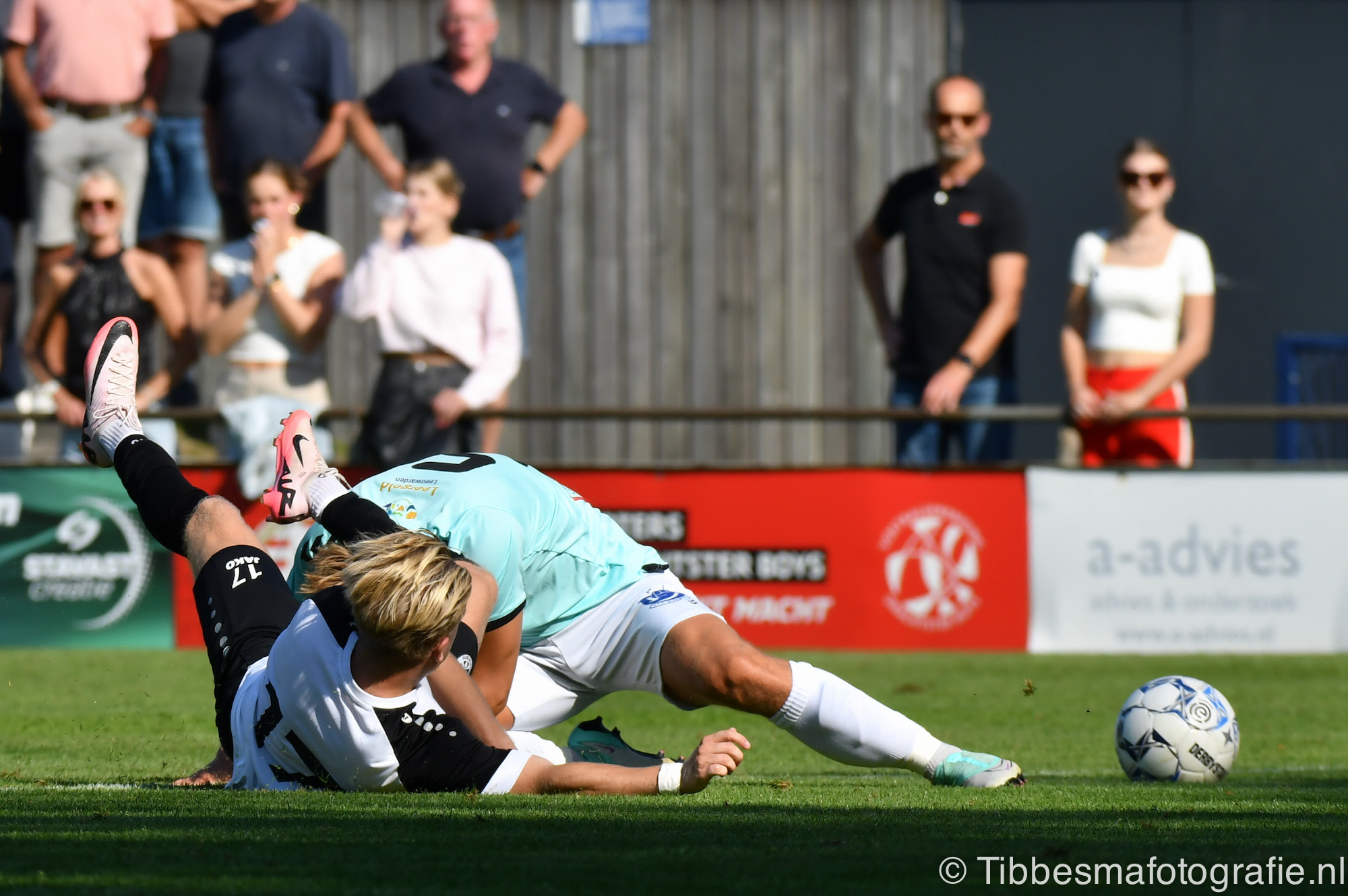 Het loopt anders. In de 3e minuut de eerste vingerwijzing. Vanaf links wordt de bal in de zestien geplaatst. Schotkans voor de bezoekers. Voorlangs. Onze Boys reageren vlot. Een corner. Er staan vier prima koppers in de zestien, dat belooft wat. Helaas.