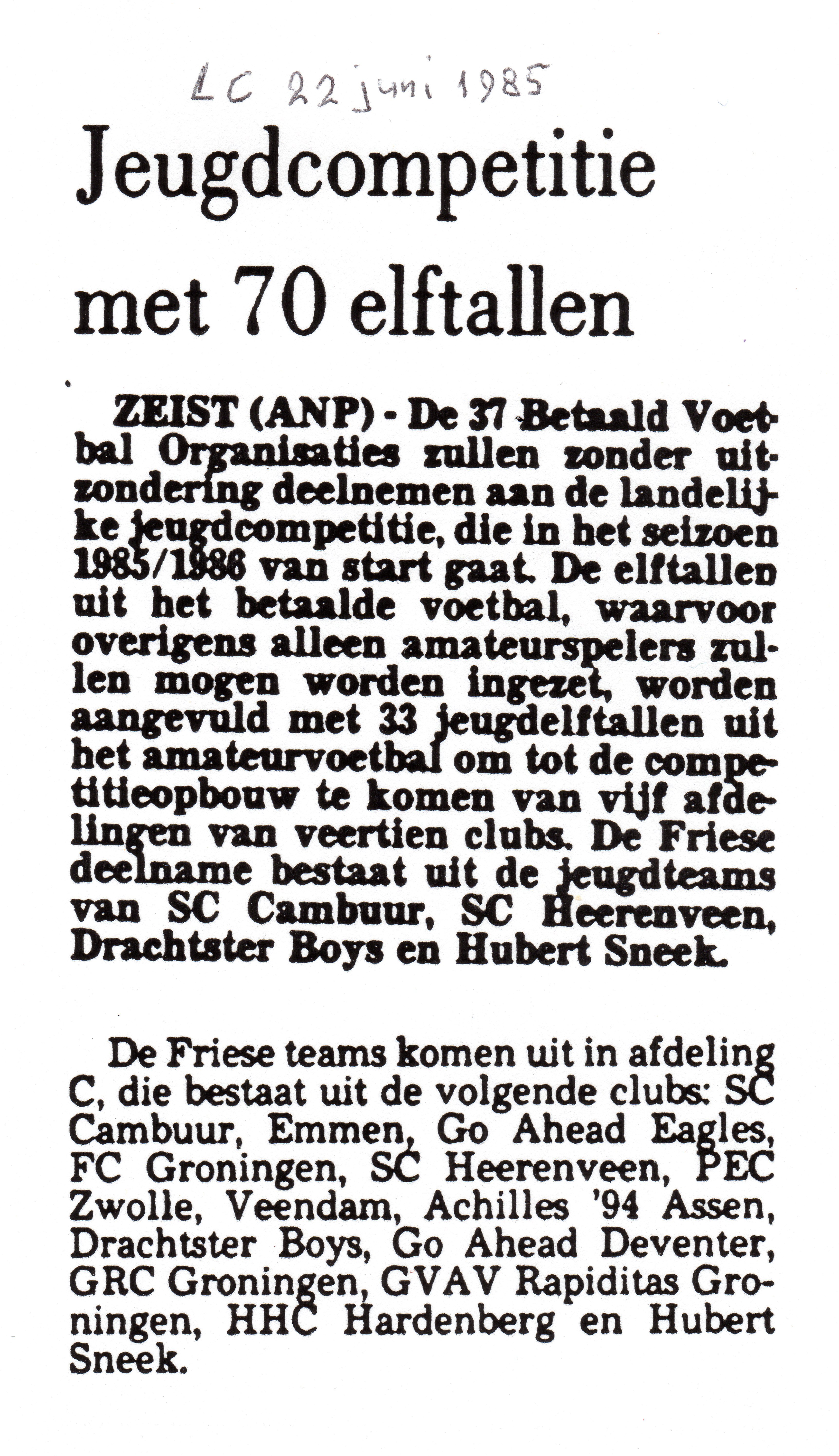 Een unieke prestatie bij de jeugd: zowel A1, B1 als D1 worden zaalkampioen van Friesland, terwijl C1 tweede wordt. Nooit meer geëvenaard. Bekijk hier de krantenartikelen.