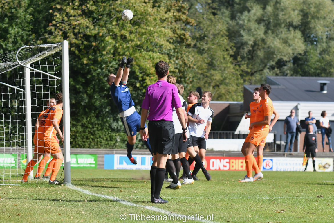 PKC’83 maakte direct in het begin zijn aspiraties duidelijk: met diepe passes de lange en forse spelers naar voren dirigeren om zo snel mogelijk een voorsprong te forceren. En die tactiek leek onmiddellijk succesvol: Mitchell Schievels dook al in de vijfde minuut als een duveltje uit een doosje op achter de verdedigers van Drachtster Boys en kon slechts via een overtreding van het scoren afgehouden worden. Het leverde PKC’83 een terechte strafschop op. Maar de deze middag uitstekend op dreef zijnde Drachtster keeper Emile Peters dook naar de goede hoek en ranselde de bal uit zijn goal.