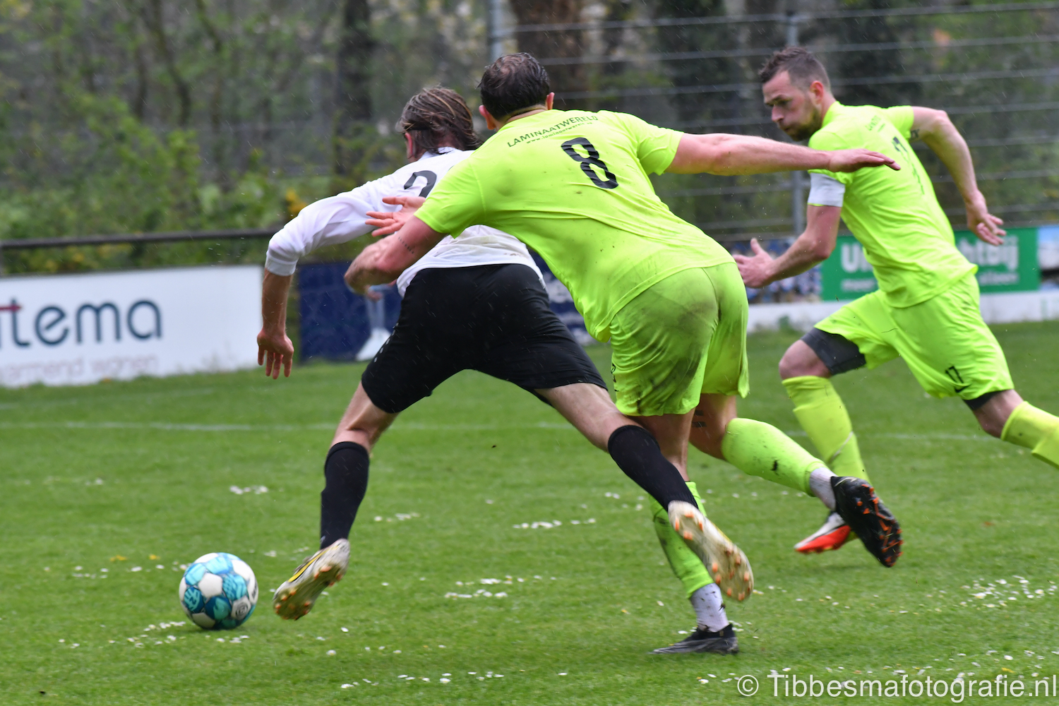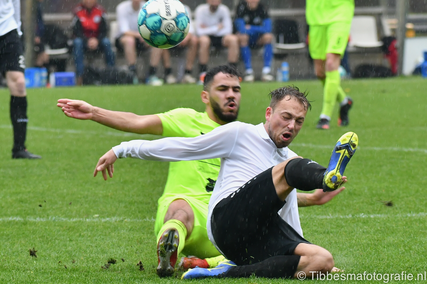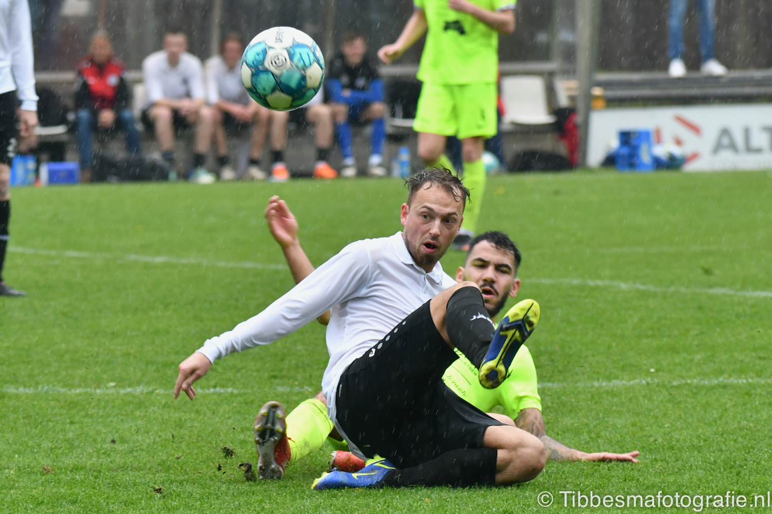 Hoe anders is de tweede helft. De temperatuur daalt, het spelniveau en het geloof in een resultaat. De regen zorgt zelfs voor wat naargeestigheid. Een glibberbal die Emile los laat. Counters die uitmonden in meer