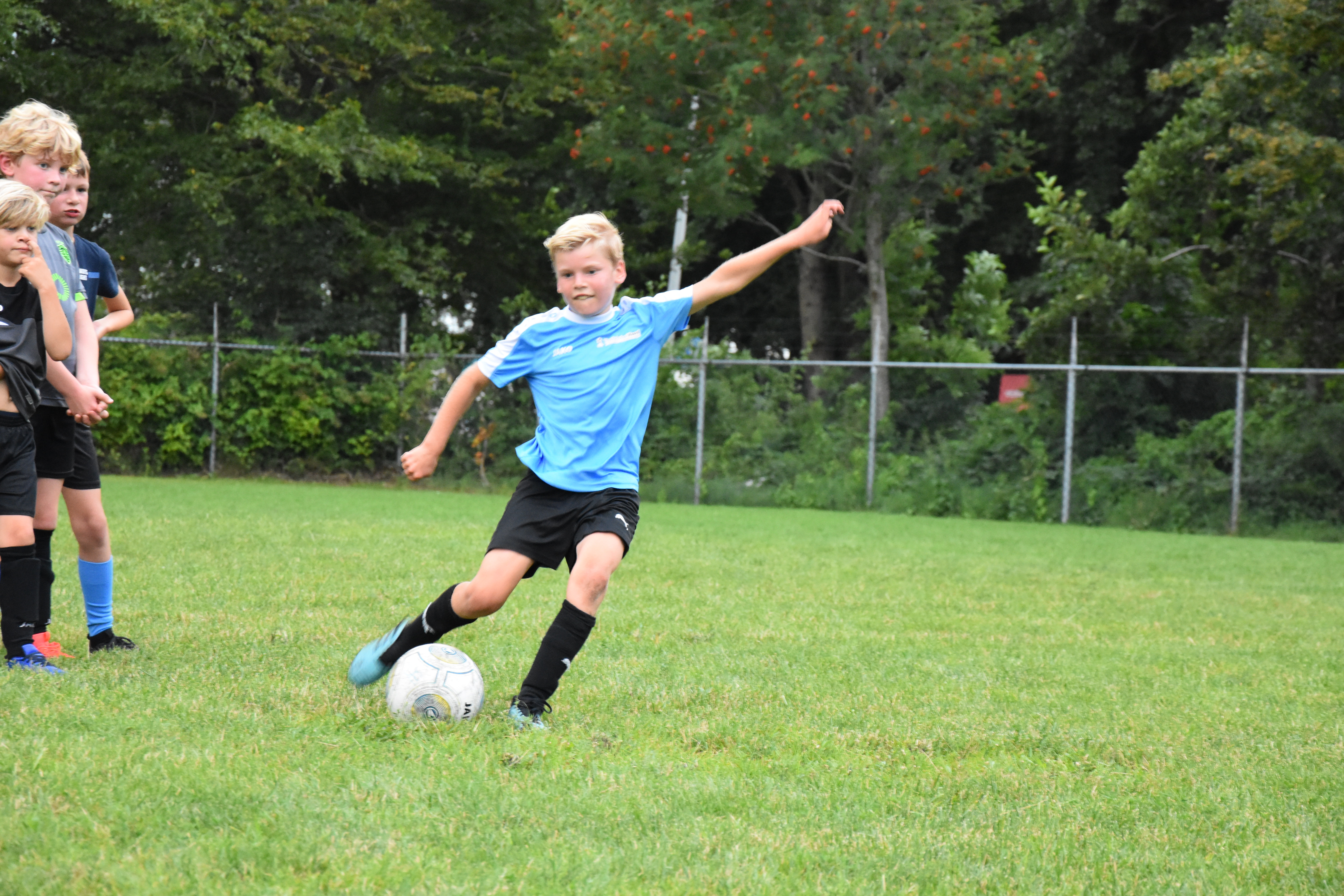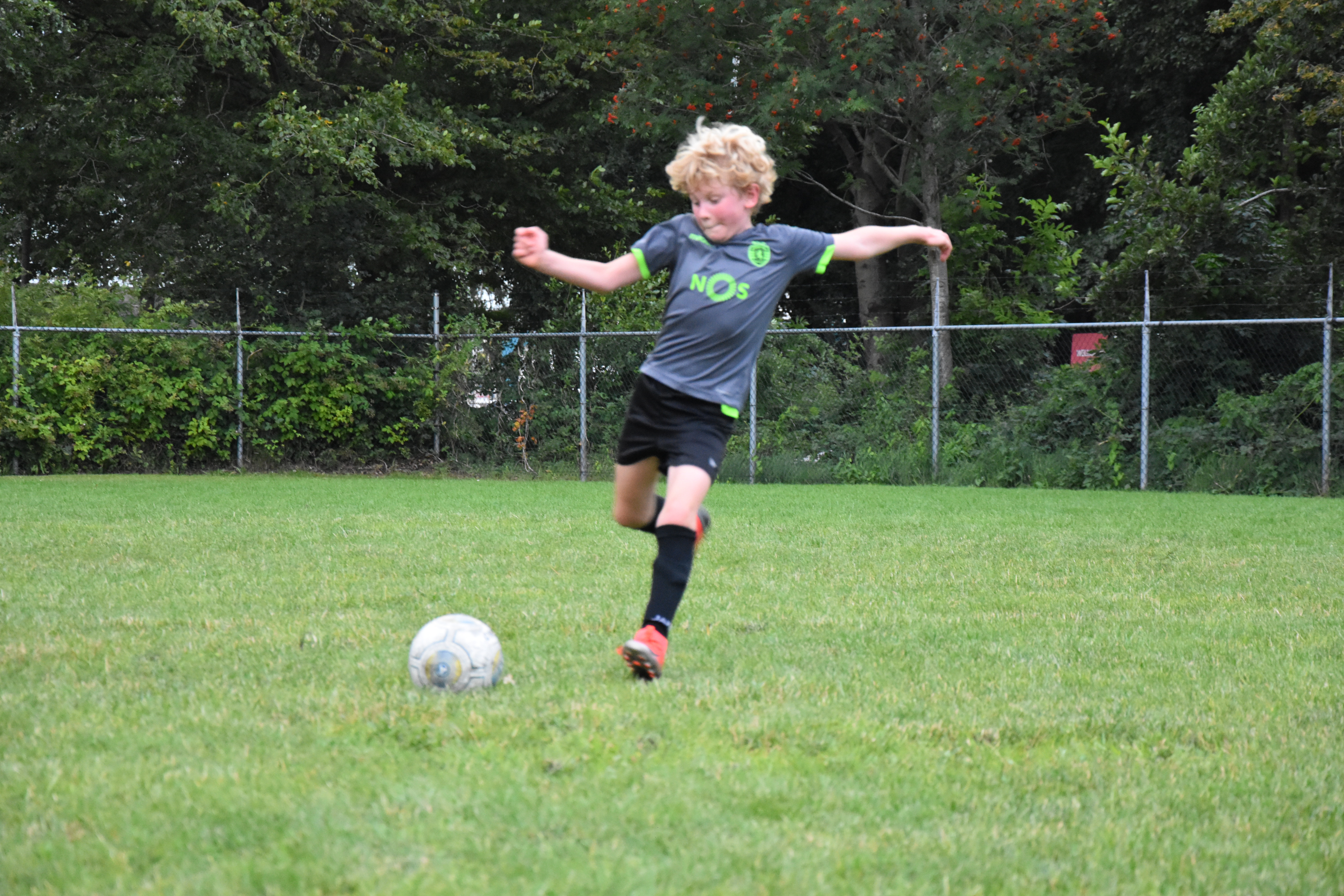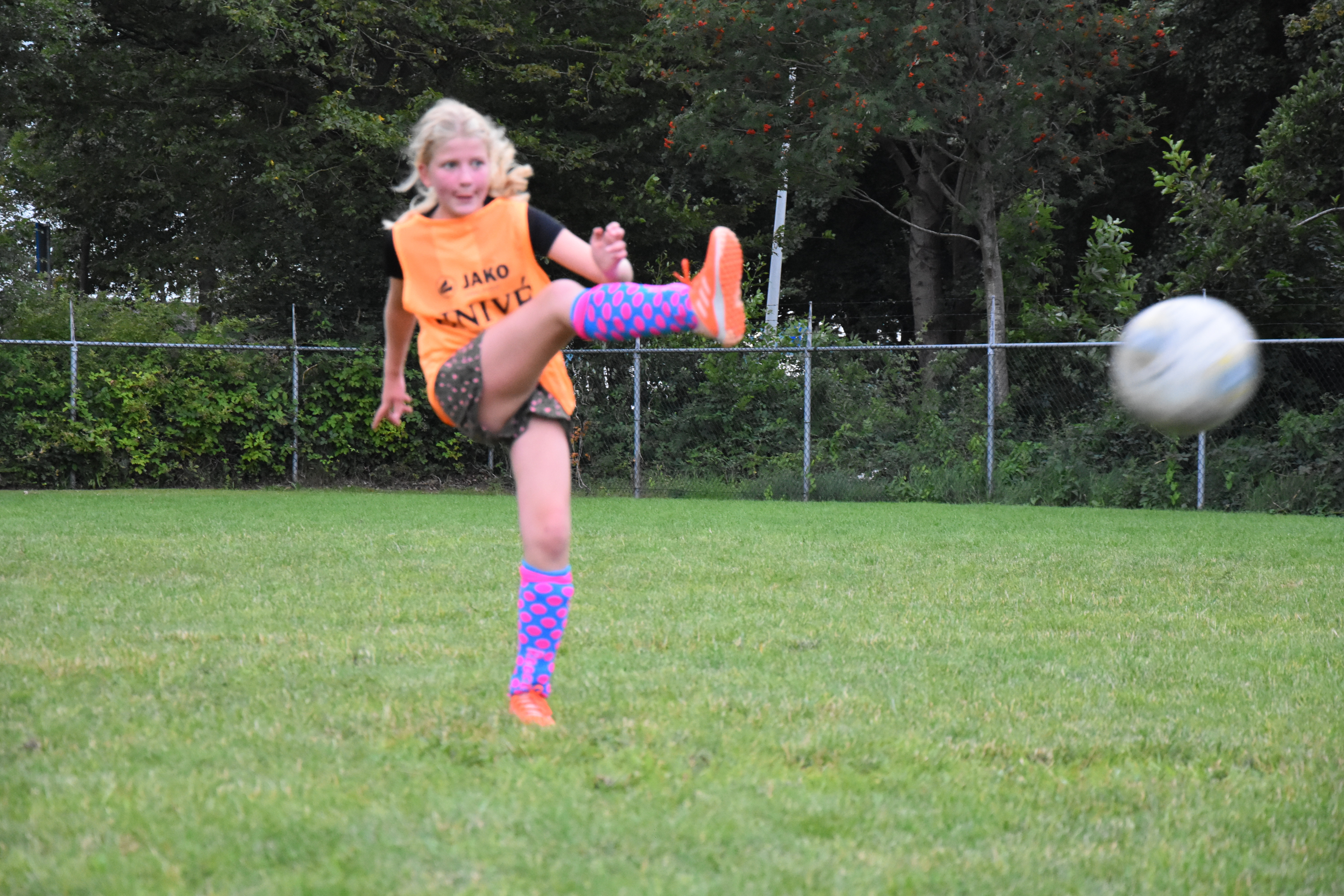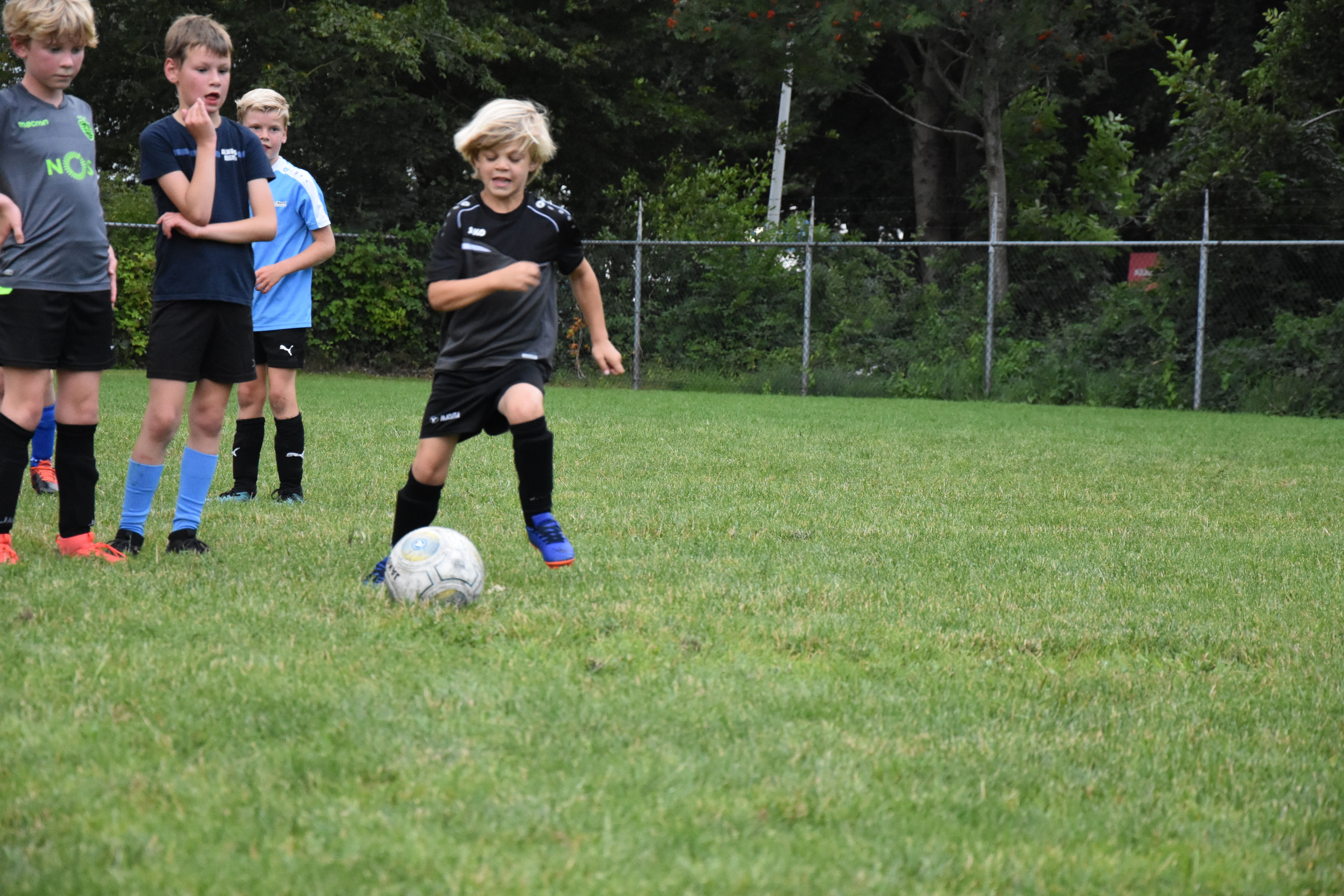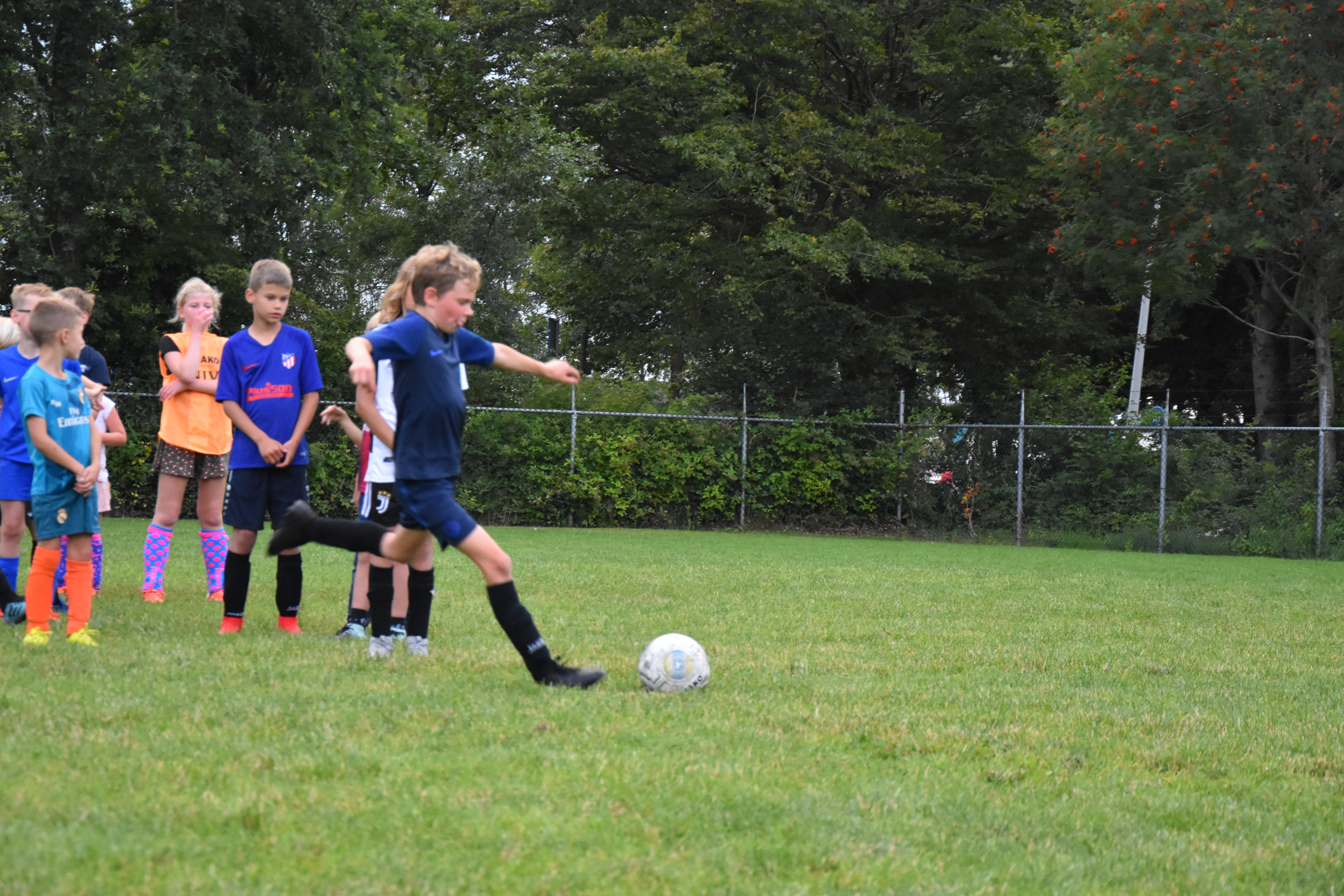 Ik ben blij dat er ouders zijn op het veld. Maandenlang mochten ze er niet bij zijn, in verband met de coronamaatregelen. Ze houden gepaste afstand, en leven mee. Sommige kinderen zijn met de auto afgezet in het Drachtster Bos, en dat is óók goed: wij passen goed op ze. Ik zie Michiel, Peter en Jort hun uiterste best doen om de kinderen zoveel mogelijk voetbalplezier te laten hebben. Het betekent trouwens dat ik eindelijk toekom aan wat ik al een hele week wil doen: foto’s maken.