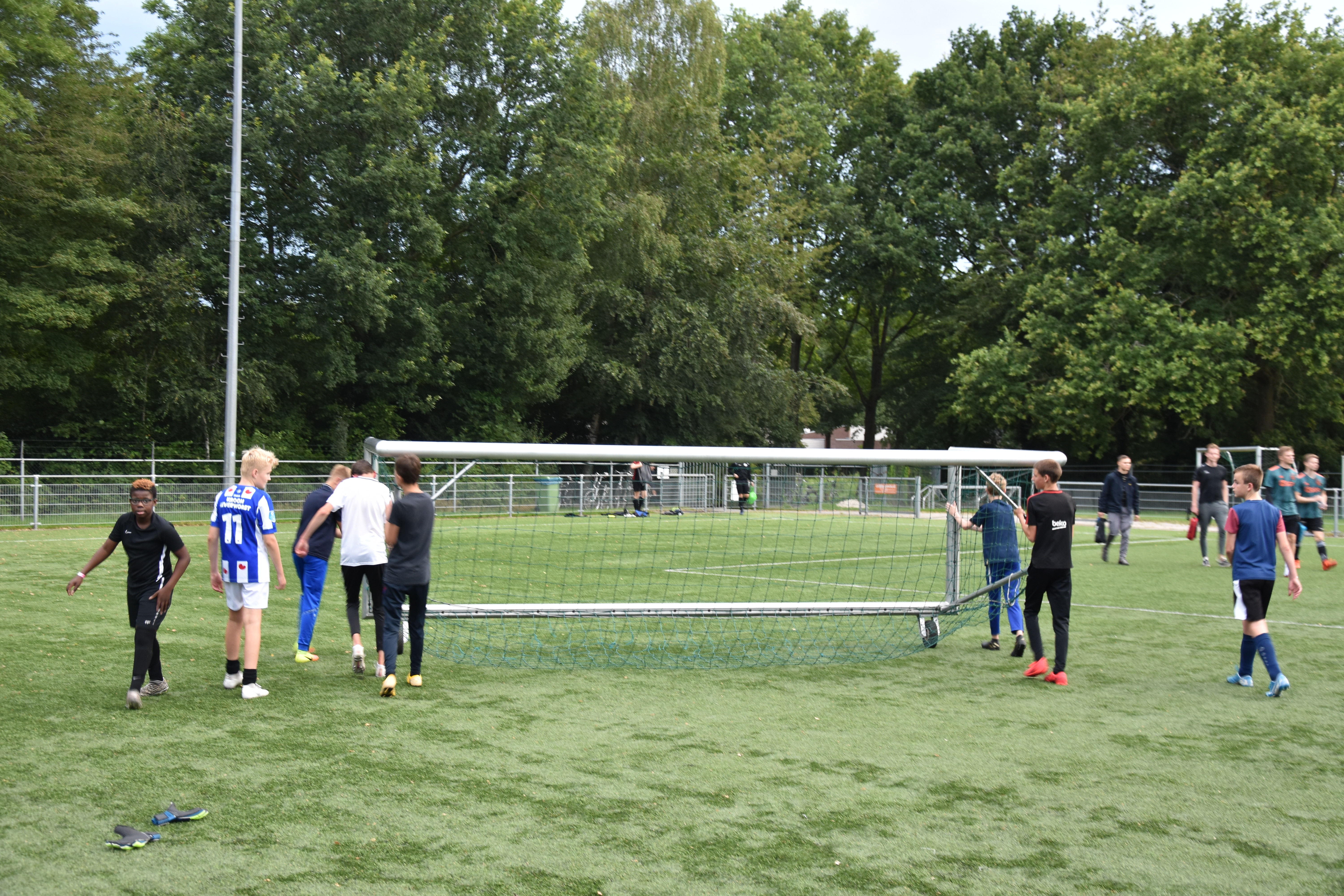 Rond twintig over acht laat Peter bij de jongsten nog even penalty’s nemen. Het fanatisme zit er nog steeds in, na dik een uur voetballen. Ik haal de oudsten van veld B, ze ruimen eerst nog even de goal op. Ook het zwerfafval wordt meegenomen: goede gewoonten beginnen vaak op een voetbalveld.