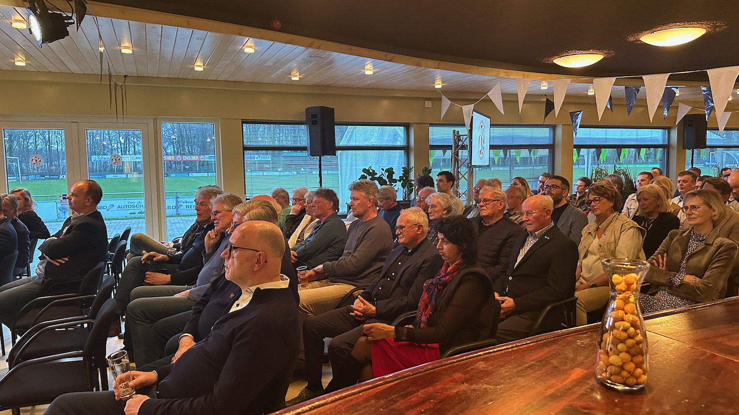 Onder ontspannen begeleiding van Omrop Fryslân-journalist Geert van Tuienen kregen vijf sprekers het woord. Directeur amateurvoetbal KNVB Jan Dirk van der Zee vertelde over hoe groots en veelomvattend het amateurvoetbal in Nederland eigenlijk is, wethouder van onder meer sportzaken Pieter van der Zwan ging dieper in op het belang van Drachtster Boys voor de gemeente Smallingerland en overhandigde nog een verjaardagscheque aan voorzitter Gijs Lokhorst. Daarna was het woord aan Marieke Visser, kind van de club en oprichter van The female trail. Zij daagde het publiek uit mee te denken over hoe inclusief voetbal eigenlijk is. Na een muzikaal intermezzo van Femke van Asselt was het woord aan kinderarts Charlotte Peer van Nij Smellinghe, over het belang van beweging bij kinderen. Het laatste woord was aan Biense Dijkstra van Bouwgroep Dijkstra Draisma, over hoe BGDD investeerd in regionale sport en cultuur. Ook hij overhandigde een cadeau: een verlenging van het sponsorcontract tot en met 2028. Het cadeau kwam overigens niet geheel onverwacht, getuige de respons van voorzitter Gijs Lokhorst, die een speciaal shirt overhandigde. Al met al een hele plezierige en inhoudelijke avond.