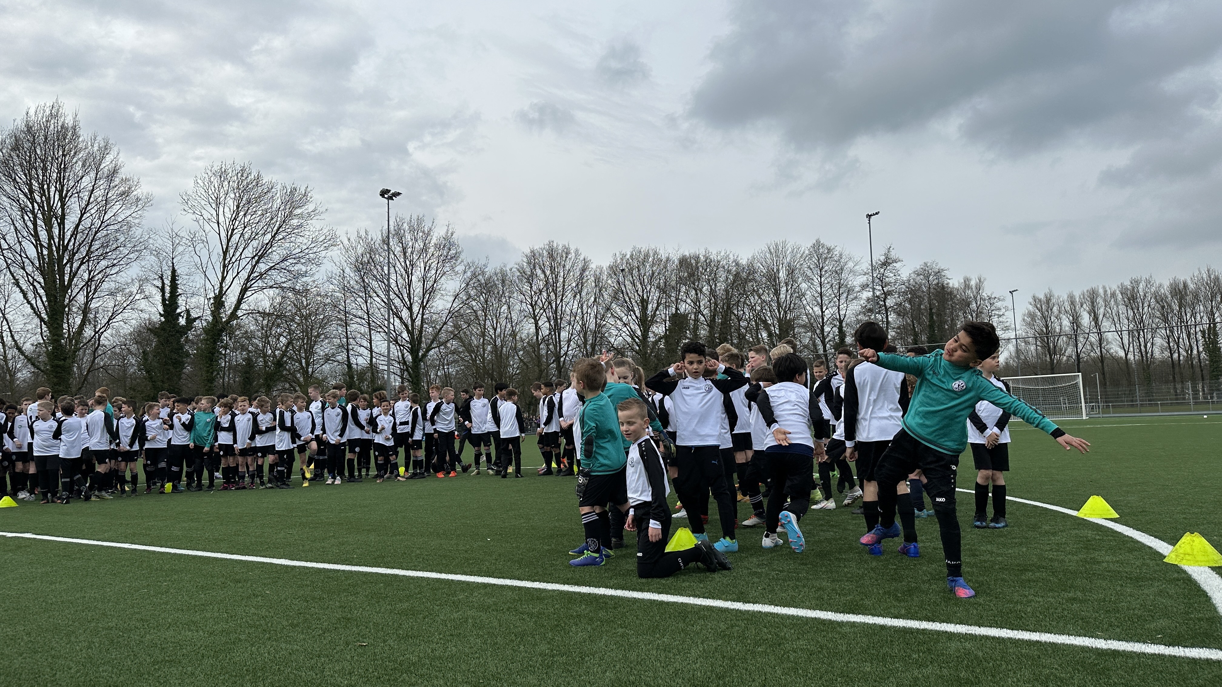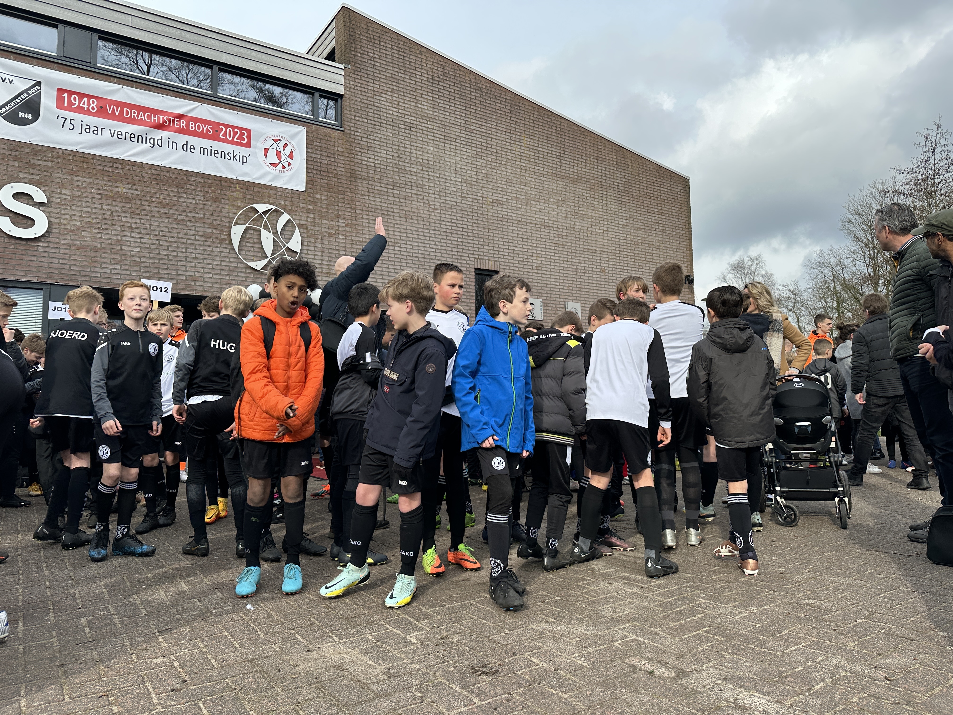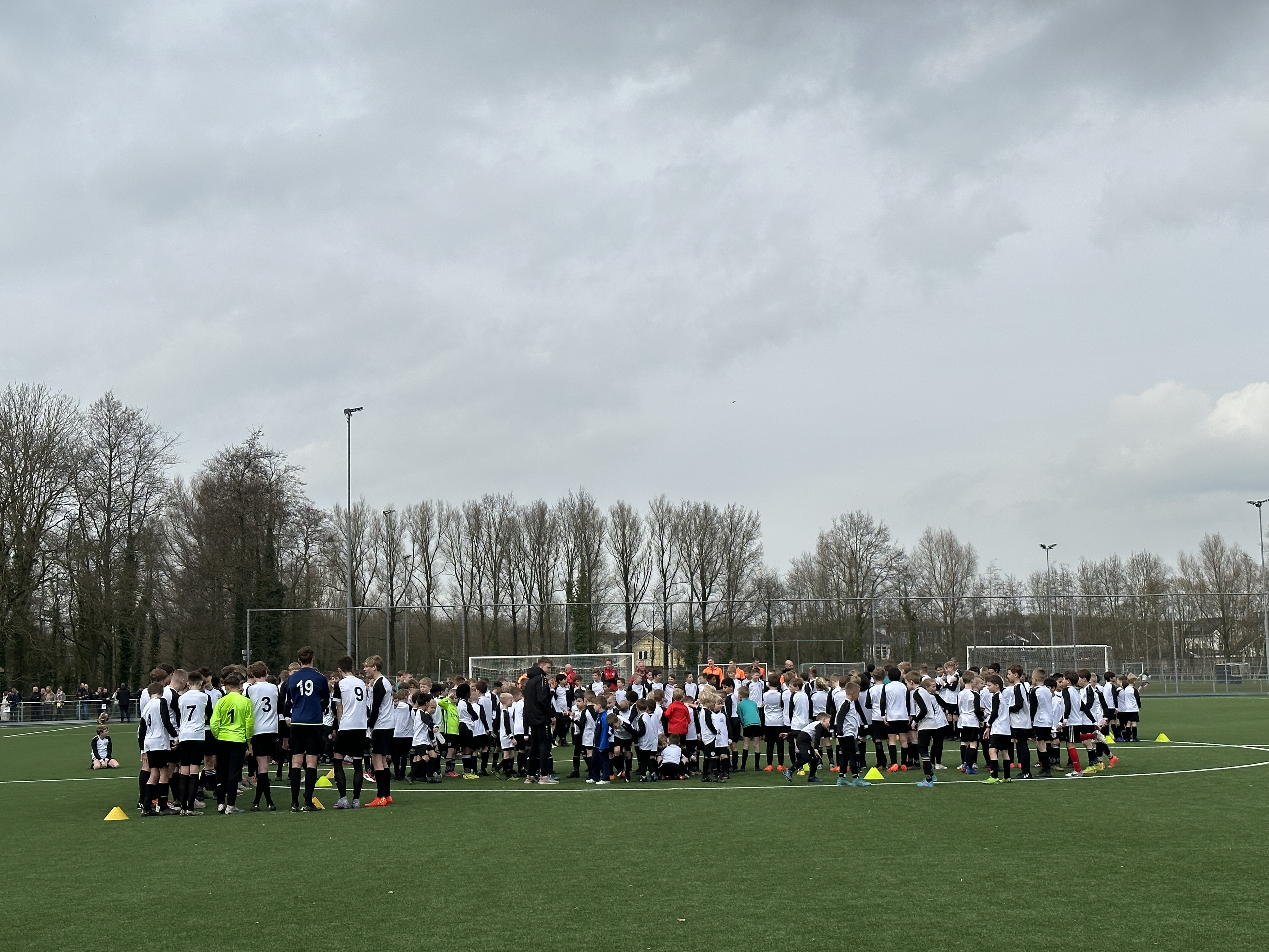 Op de jubileumdag ging de jeugd, na verzameld te hebben bij het clubhuis, op weg naar het B-veld, onder leiding van leiders, trainers en de A-selectie. Er werd een bijzondere foto met de drone gemaakt.