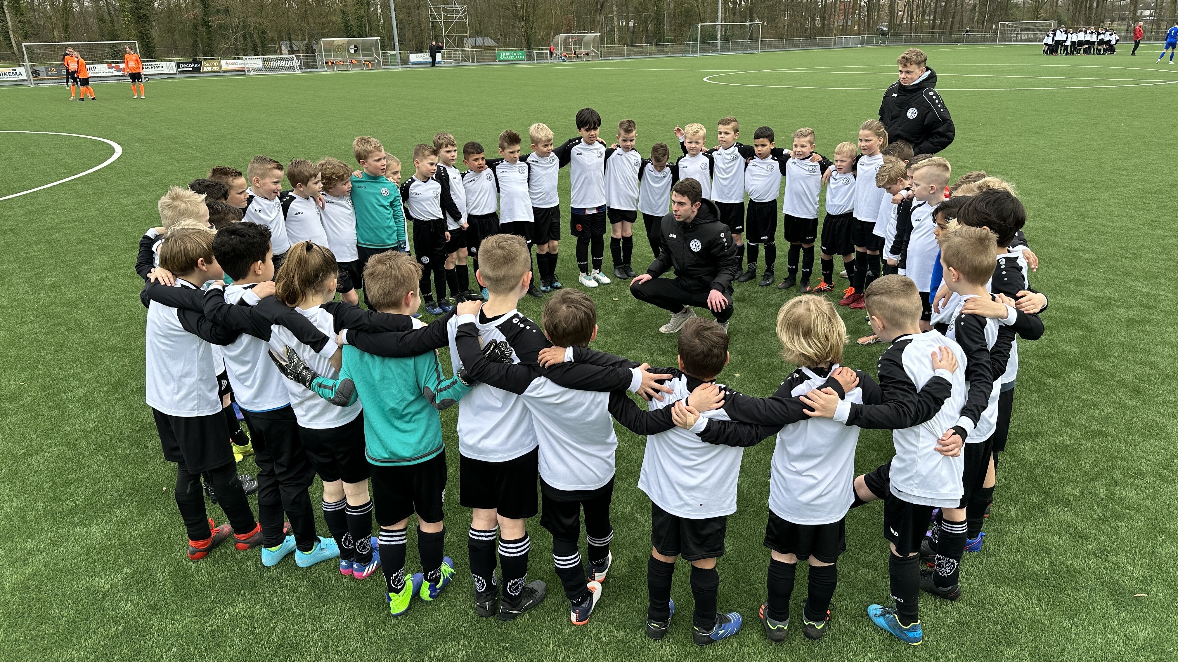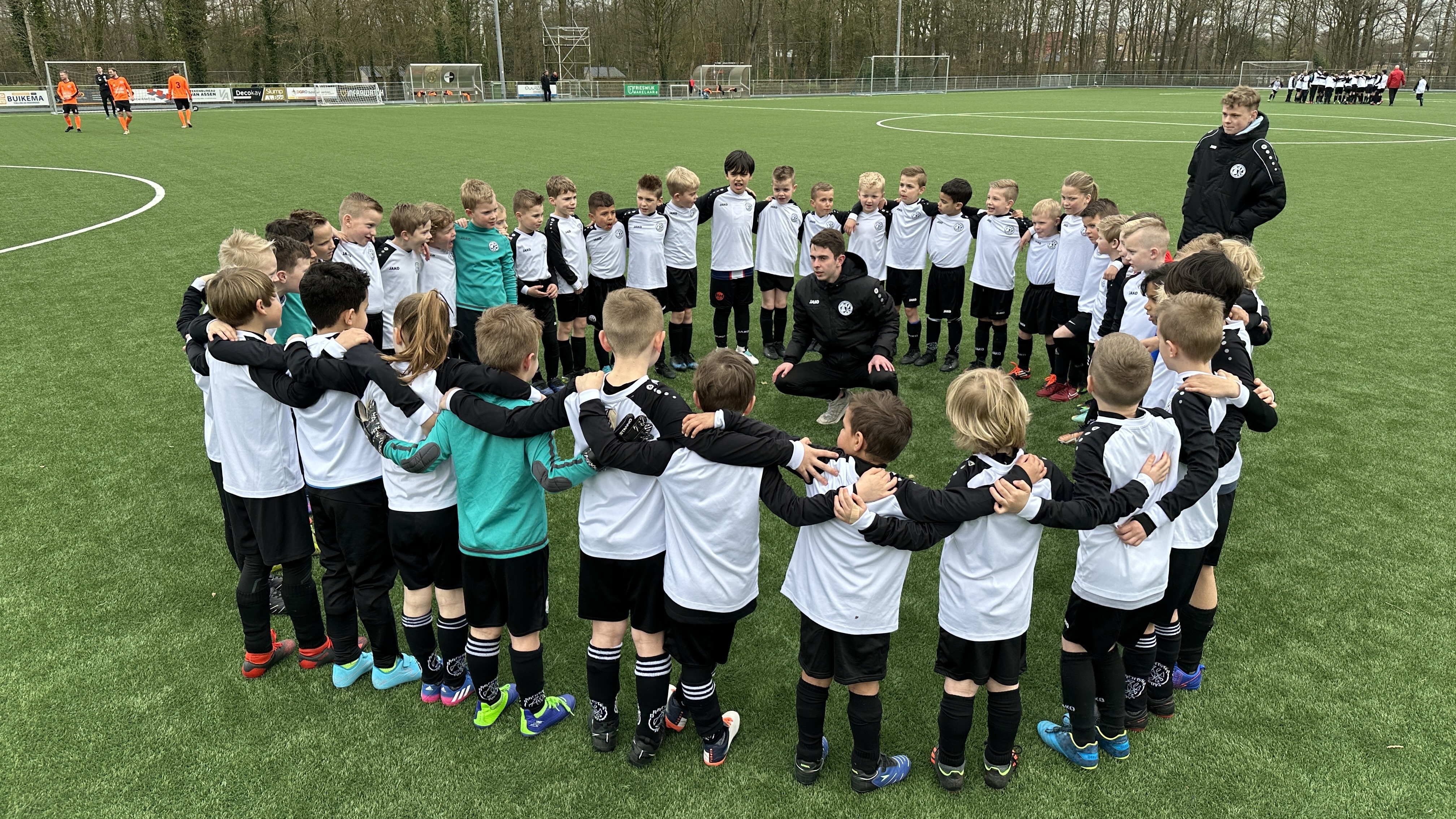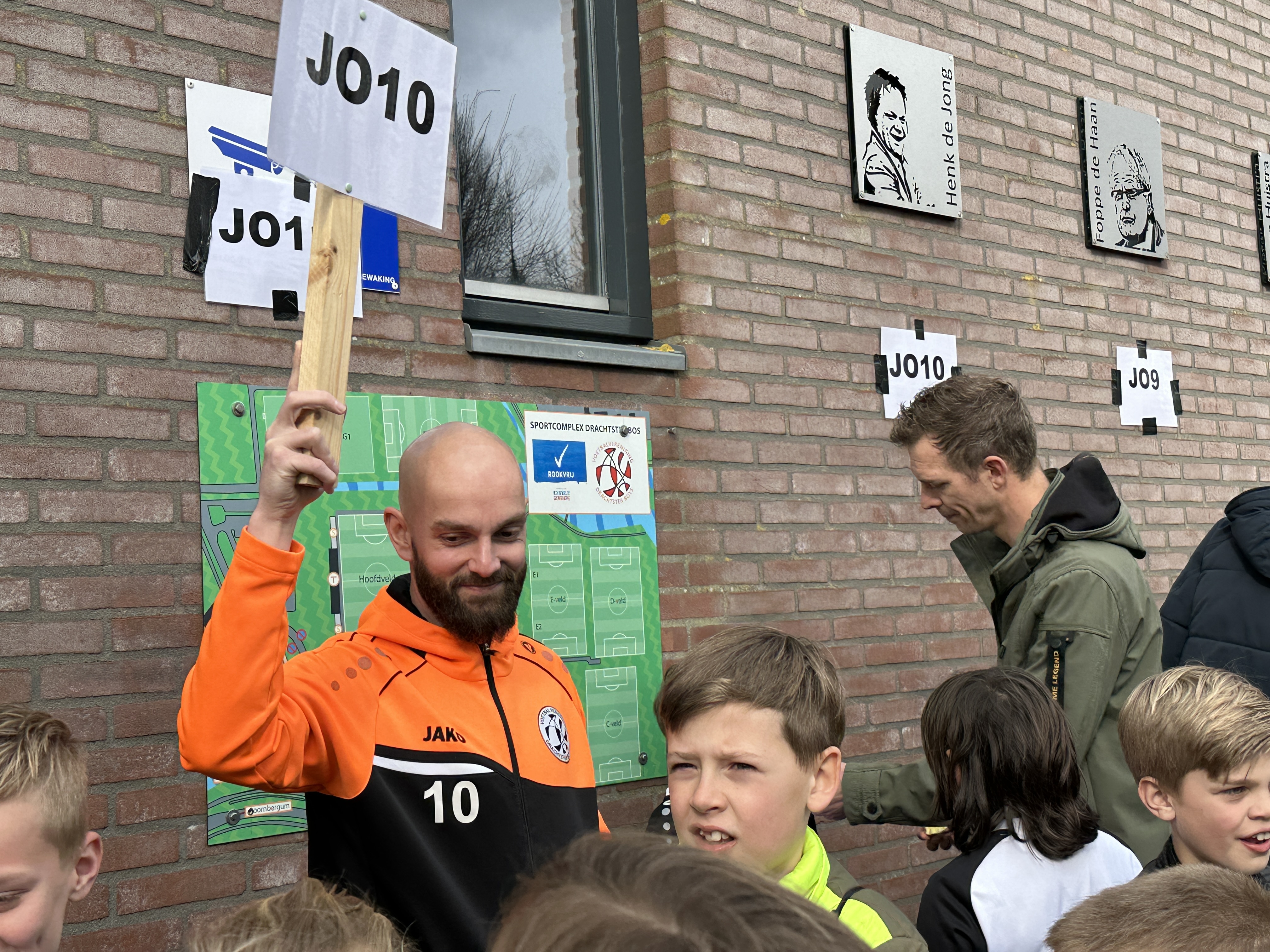 Op de jubileumdag ging de jeugd, na verzameld te hebben bij het clubhuis, op weg naar het B-veld, onder leiding van leiders, trainers en de A-selectie. Er werd een bijzondere foto met de drone gemaakt.