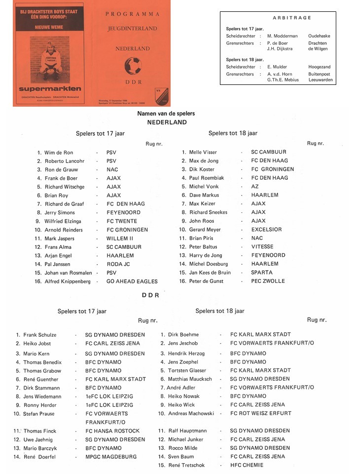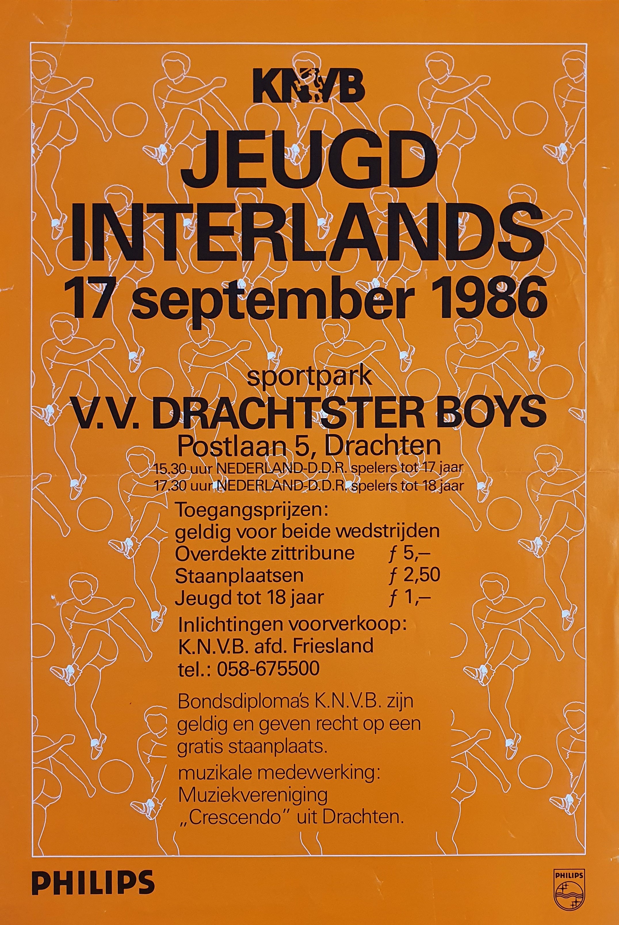 Op 17 september 1986 vindt in het kader van de KNVB Jeugdinterlands op het sportcomplex van Drachtster Boys de jeugdinterland plaats tussen Nederland en de toenmalige DDR. Met onder anderen een piepjonge Frank de Boer en Richard Witschge.