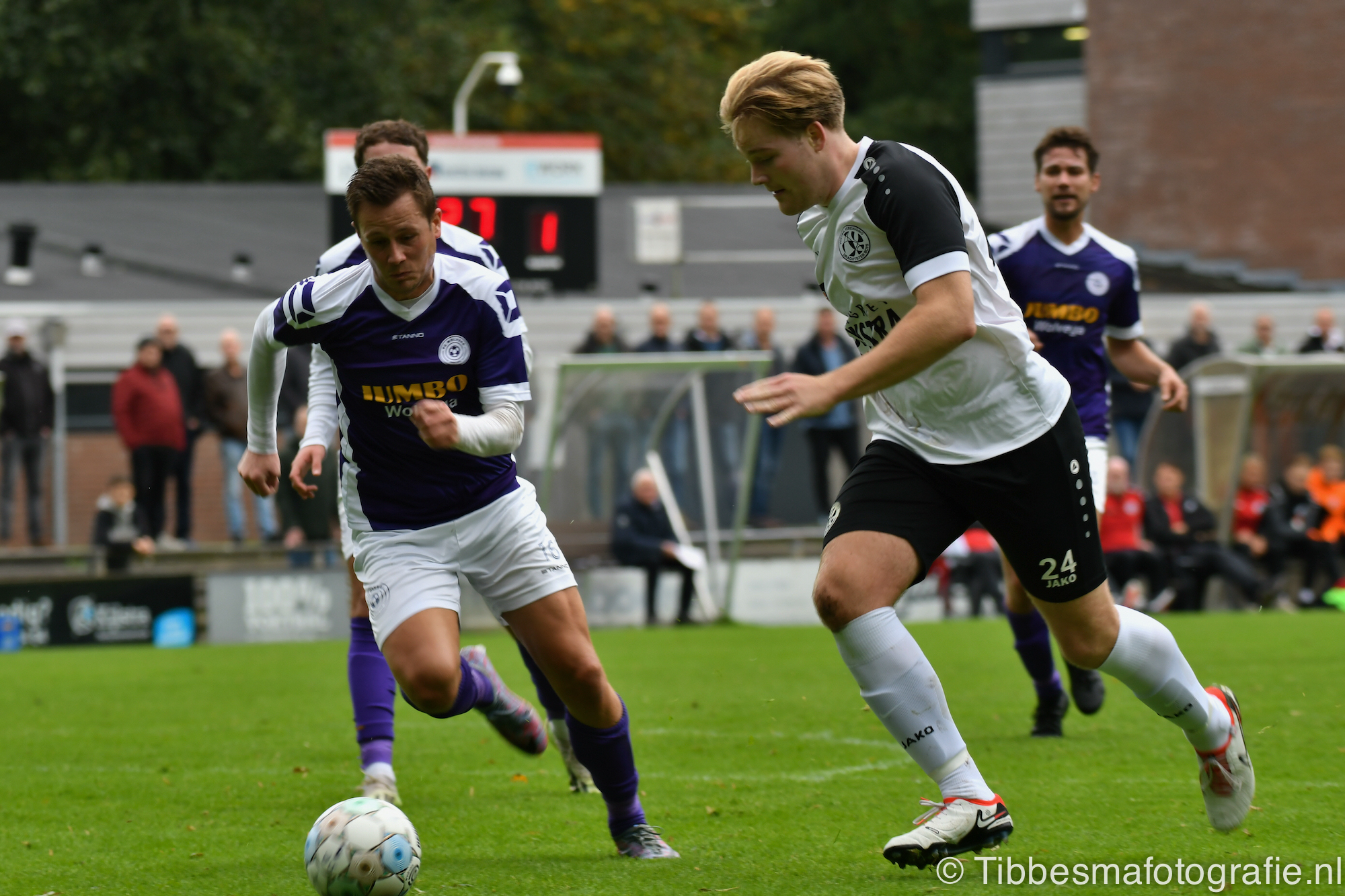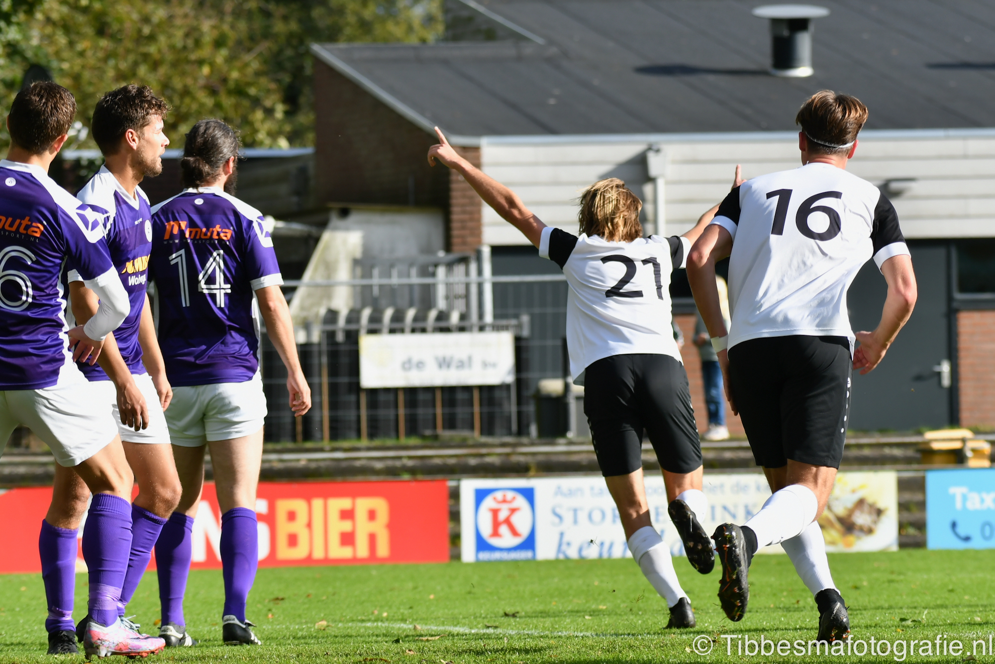 Een iets latere corner zorgt voor de 1-0. Eize schampt de bal precies goed. Plots de gelijkmaker. Een moment van onachtzaamheid in de verdediging. F.C. Wolvega laat hier en daar zien dat ze aardig kunnen tikken. De keeper van Wolvega heeft het lastig bij hoge ballen. Zo komt de 2-1 tot stand. Barelds komt hoger. Kopt en scoort.