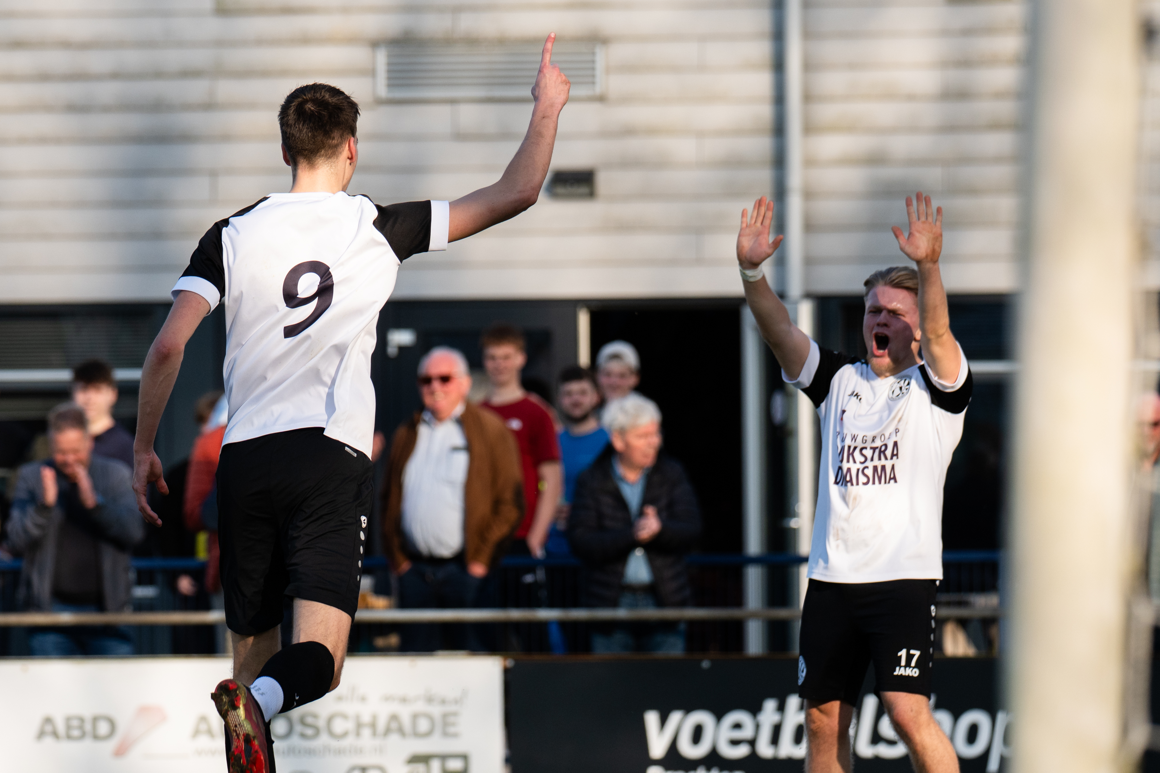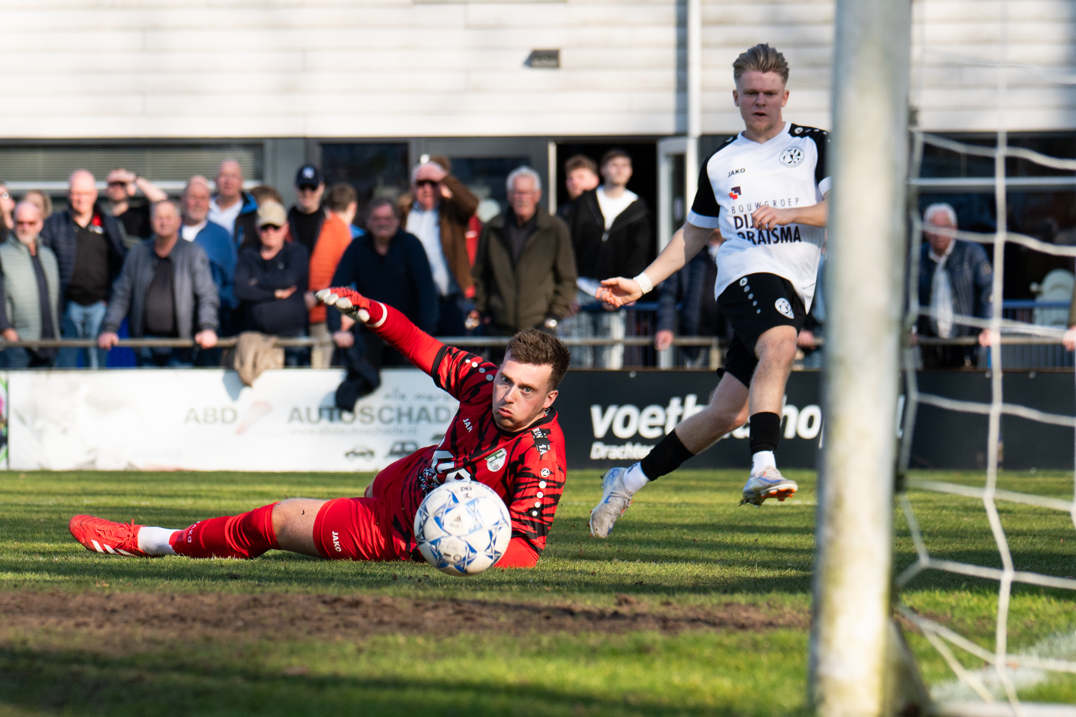 Dylan twee keer over zijn geliefde linkerkant. De eerste keer scoort hij zelf. De tweede actie is zeker zo fraai. De voorzet afgemeten. Joost Bosma timet perfect, volleert de bal uit de lucht en plaatst deze achter de keeper van Heerenveen.