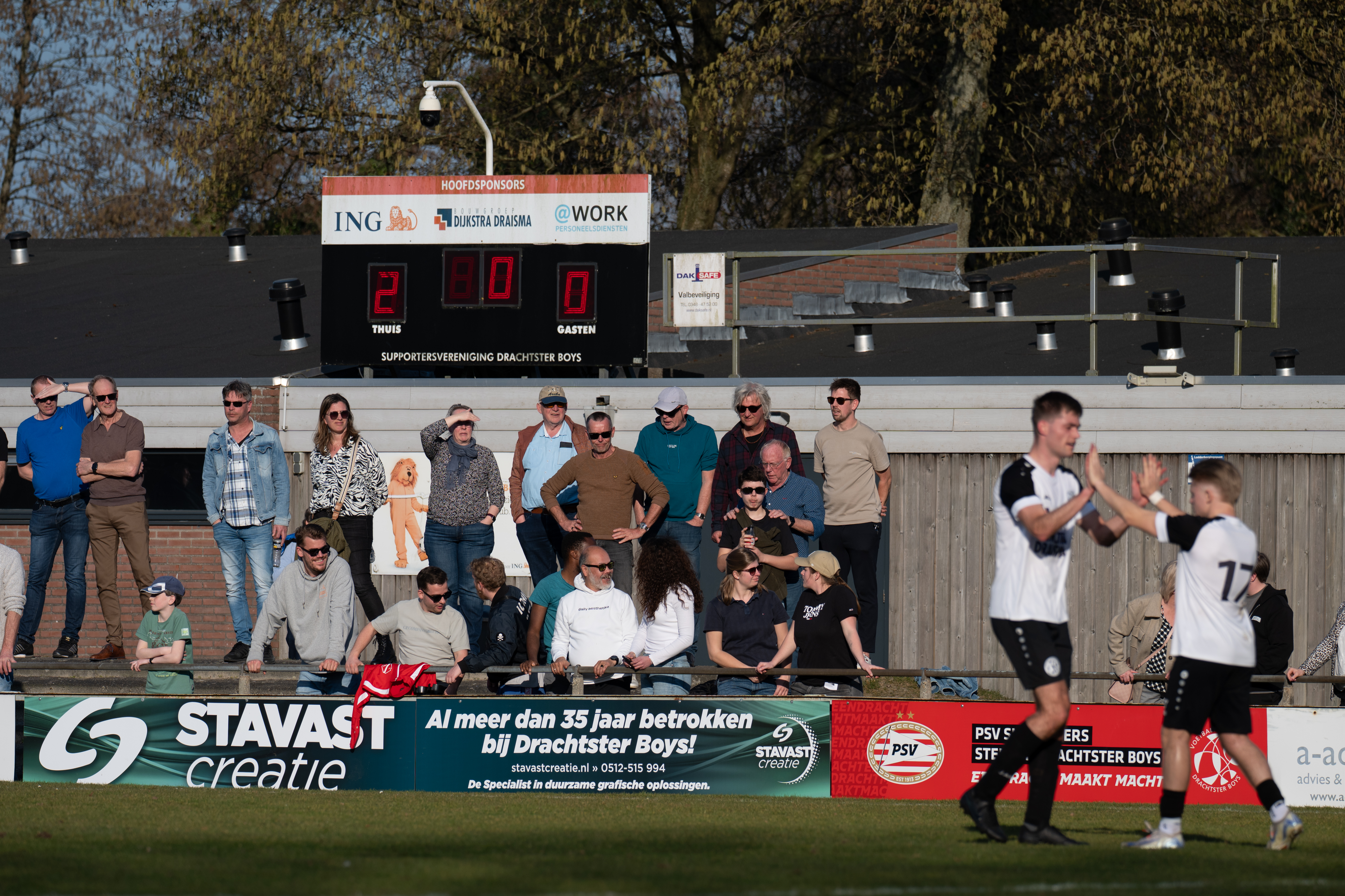 De wedstrijd. Er zit pap in de benen bij de spelers. Lentepap. Pas in de tweede helft is er wat noemenswaardig te beleven. Het betreft twee doelpunten en rood.