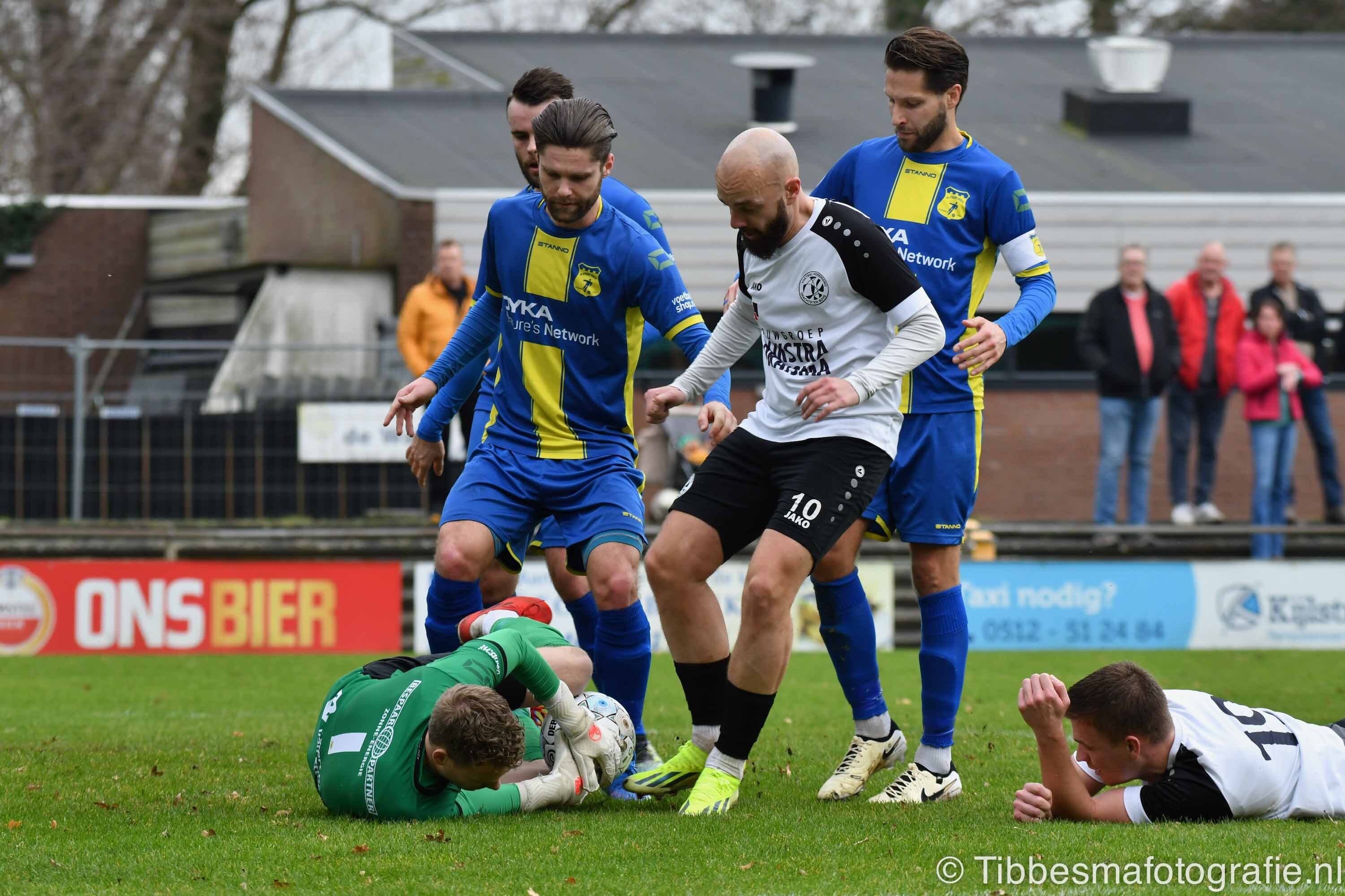 De tweede helft geeft een wat ander beeld. De Boys laten zich iets meer terug dringen. De voorsprong wordt gekoesterd. Na een uur gaat het mis. Een overtreding in de zestien meter. De pennel wordt feilloos in de hoek geschoten. 1-1. Daarna is er een fase met twee lange blessurehandelingen. Eerst voor een Steenwijker, net onder zijn oog.