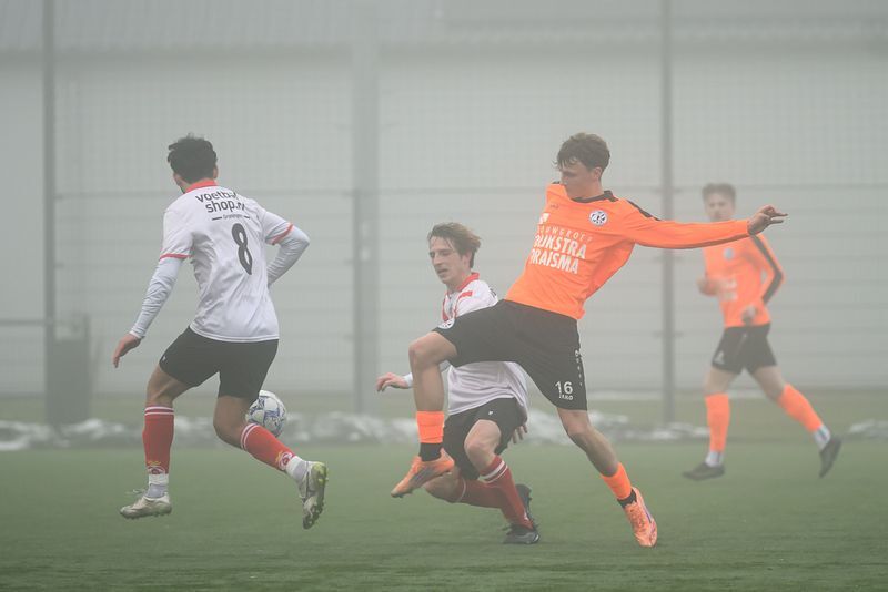 We begrijpen een klein half uur lang niet goed waarom de thuisploeg slechts één punt heeft vergaard. Totdat binnen 1 minuut er van alles misgaat. De keeper van de thuisclub komt onbegrijpelijk uitlopen. Dylan profiteert en stelt Jorn in staat om de 1-0 binnen te schuiven. De 2-0 direct na de GRC aftrap, wederom Jorn. Chris is bij beide doelpunten als slimme passer betrokken.